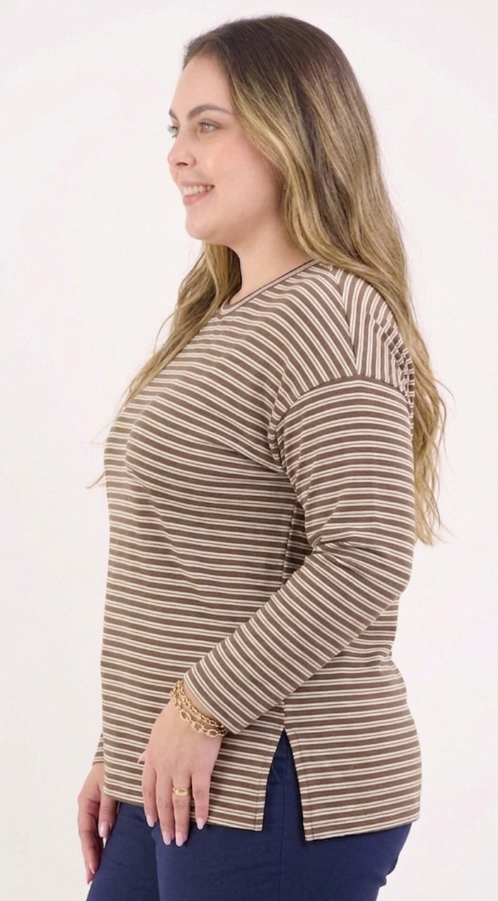 Buzo de darlon super soft rayado con tajos al costado. Talle unico equivale a XXL