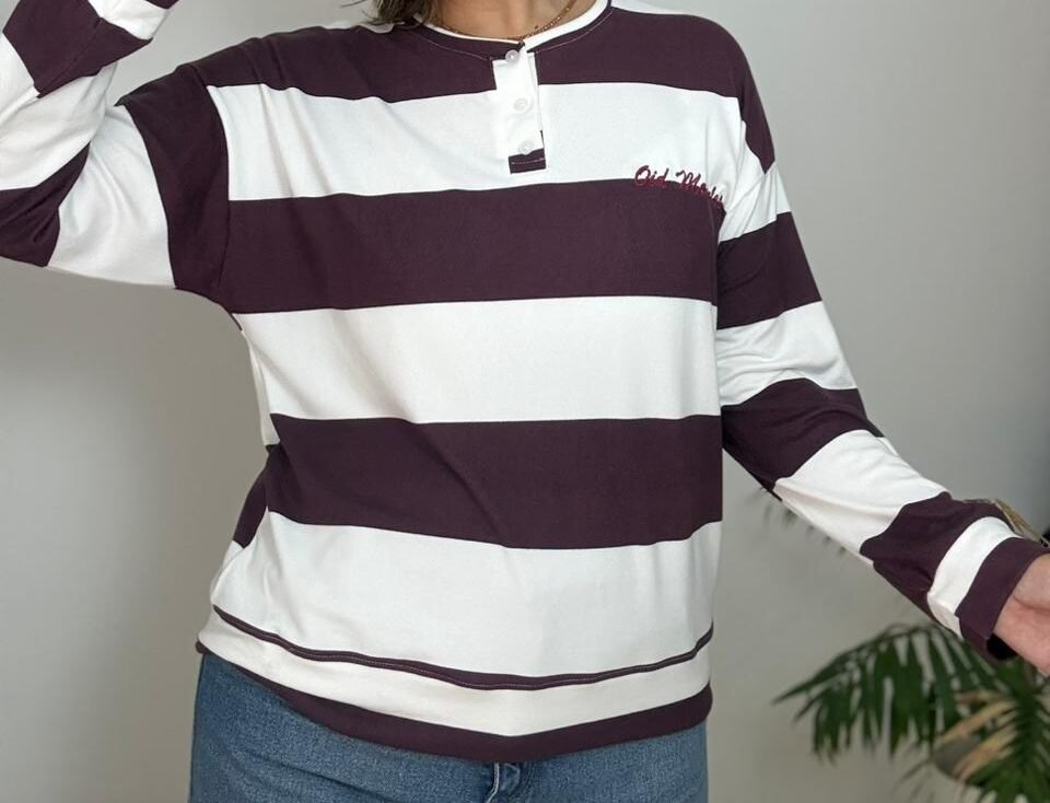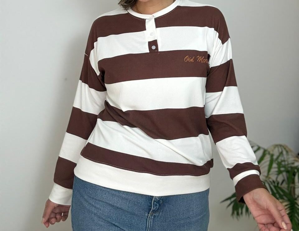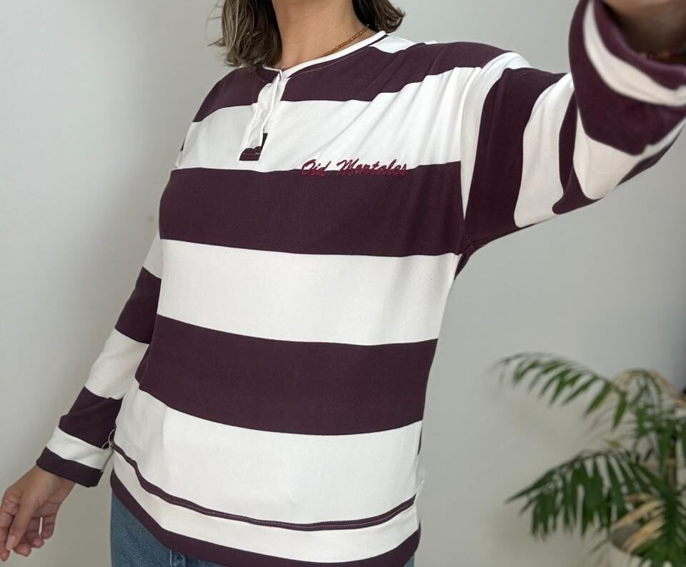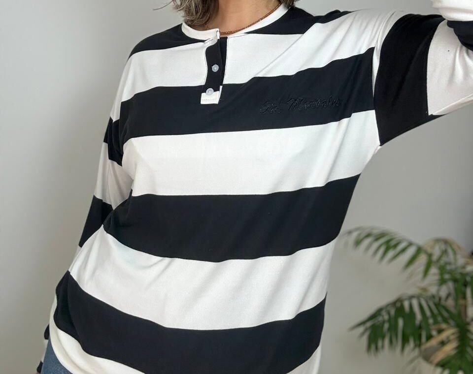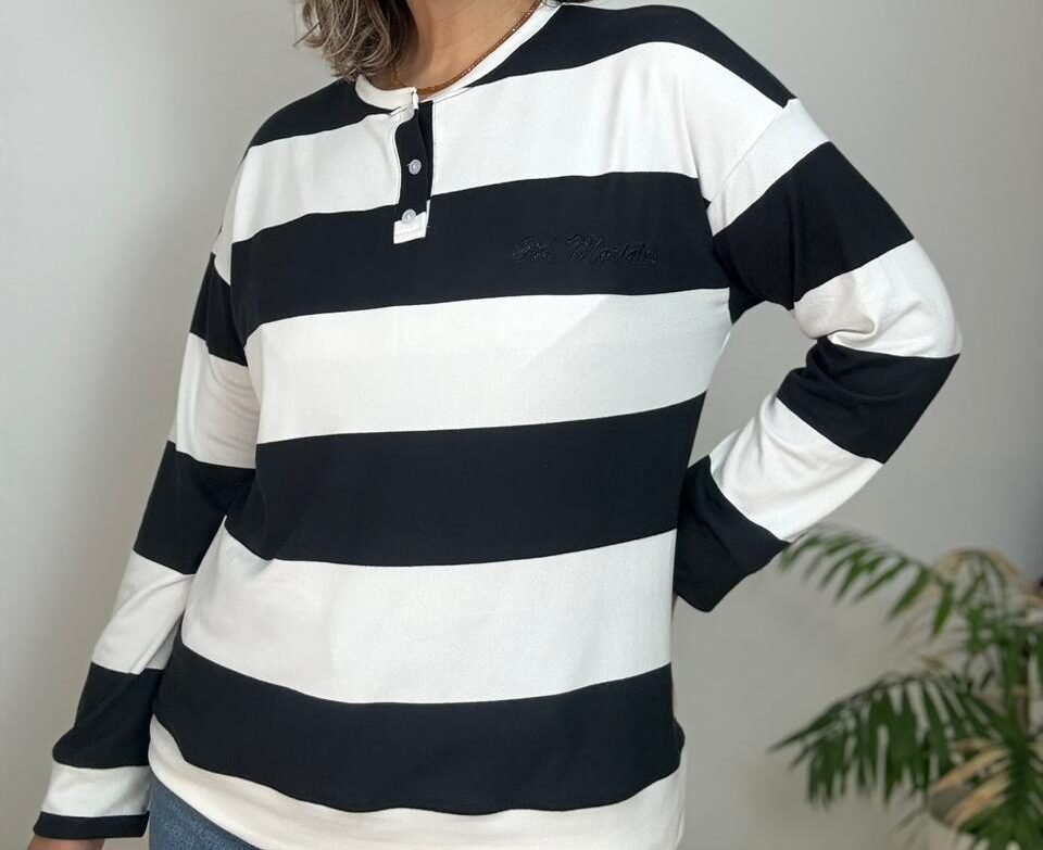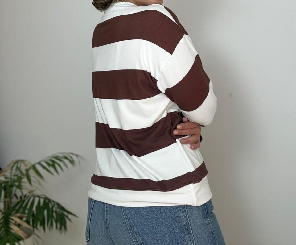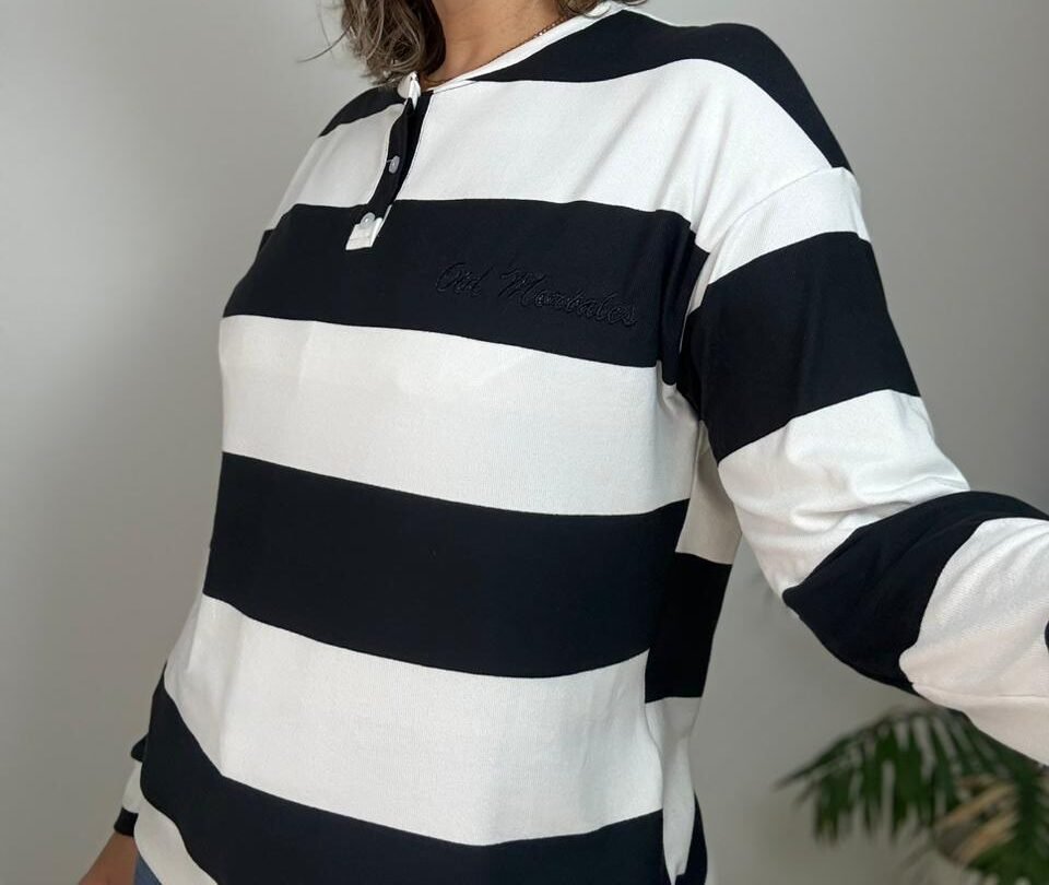 Buzo con cuello mao con  carterita y bordado que incorpora una sutil frase del himno nacional. Confeccionado en lanilla con viscosa, de tacto suave y abrigo liviano.