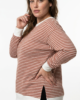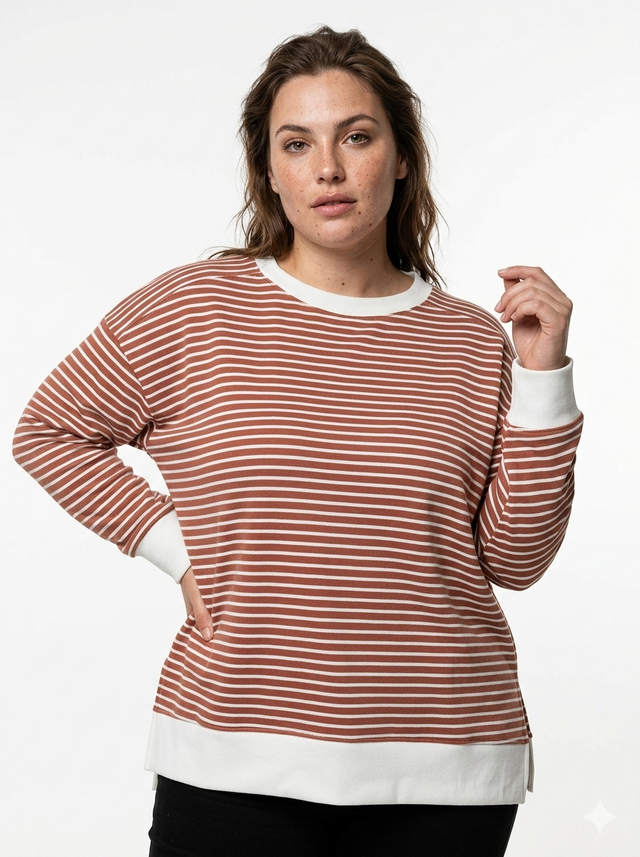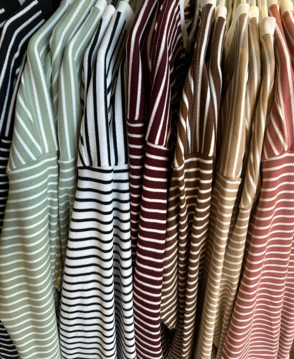 Buzo de darlon rayado, cuello y puño combinado, tajos en los costados Talle único oversize.