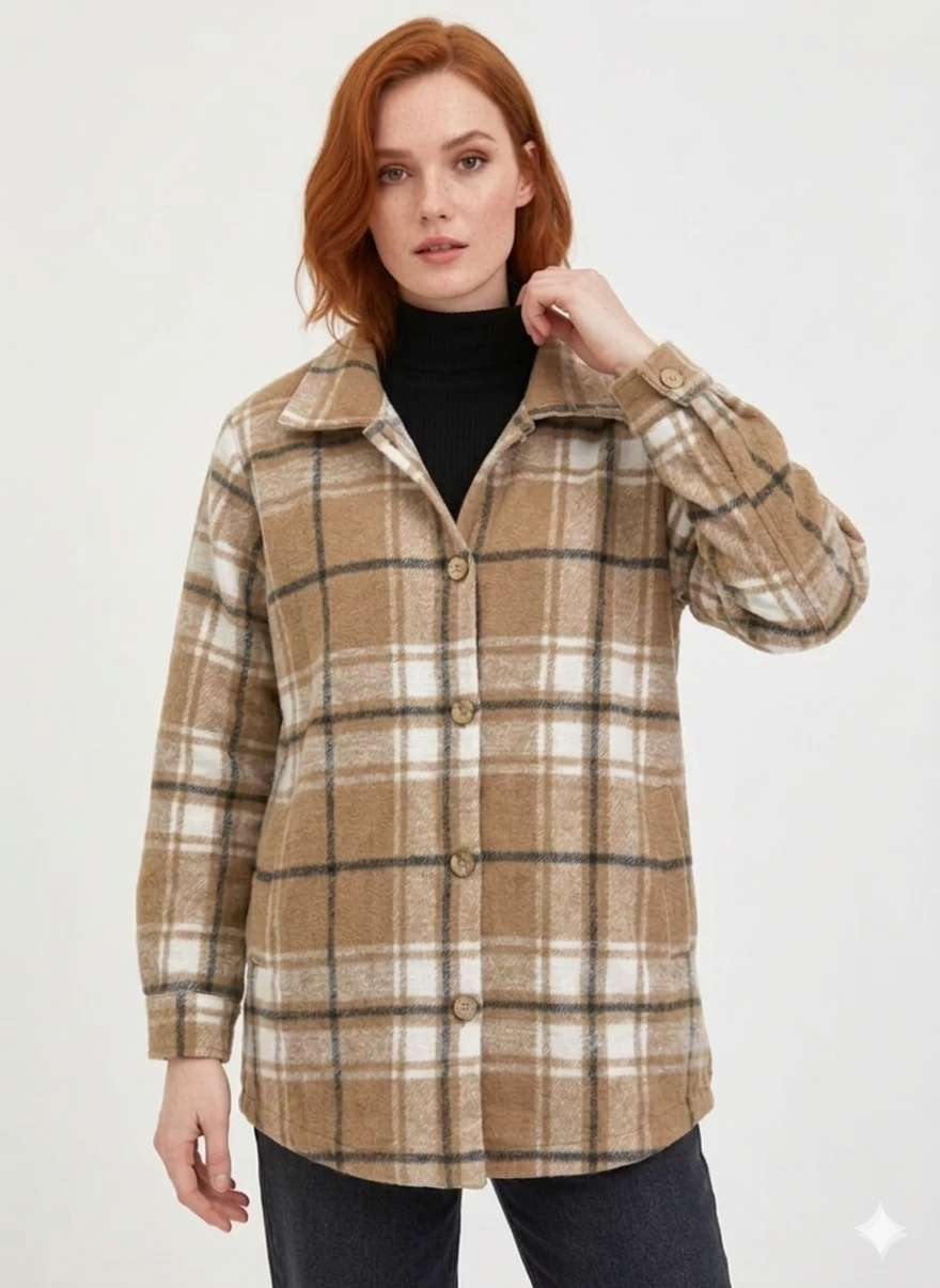 Camisaco de paño cuadrille talle unico oversize Medidas: Ancho 54cm, largo 73cm.