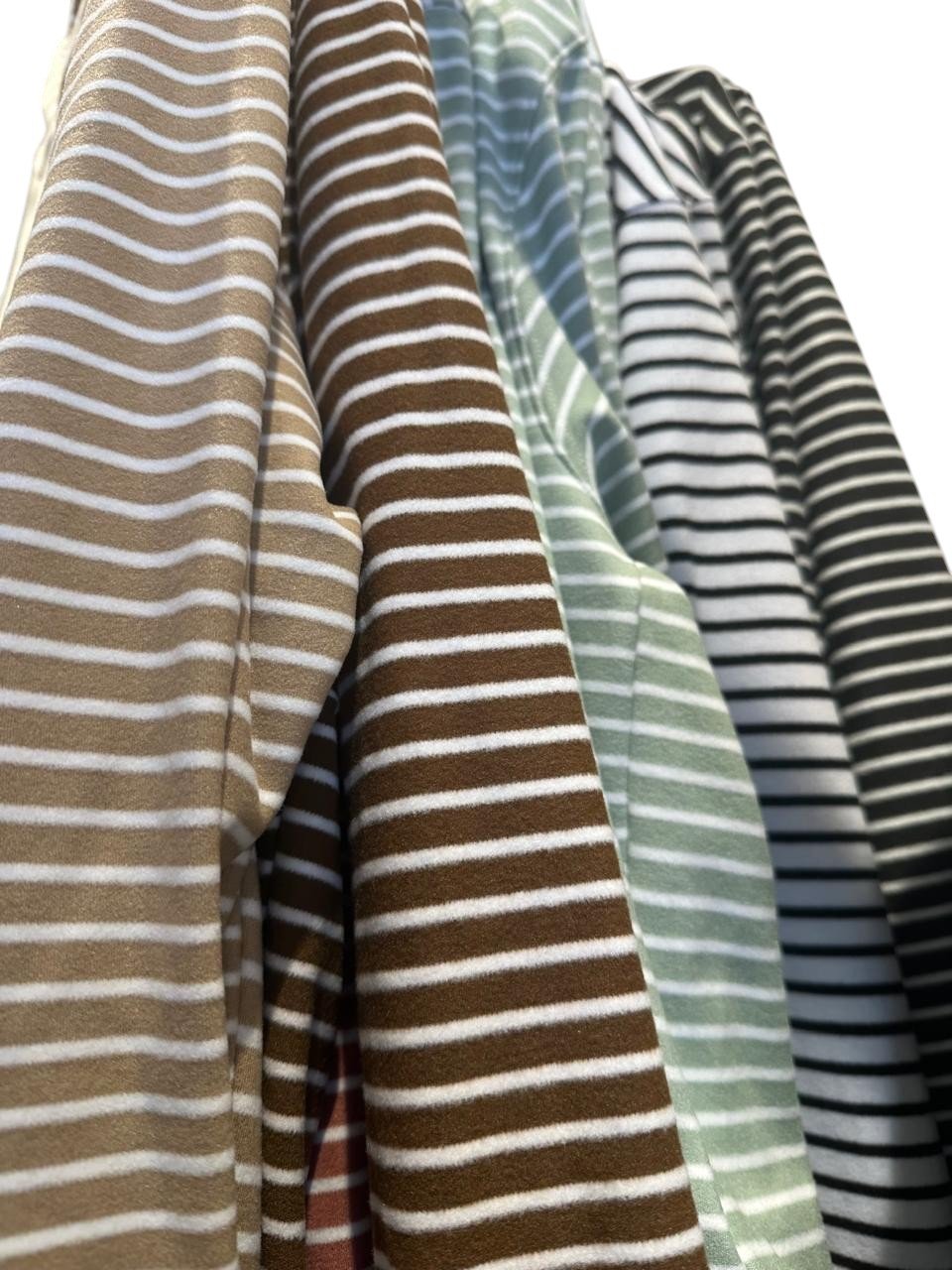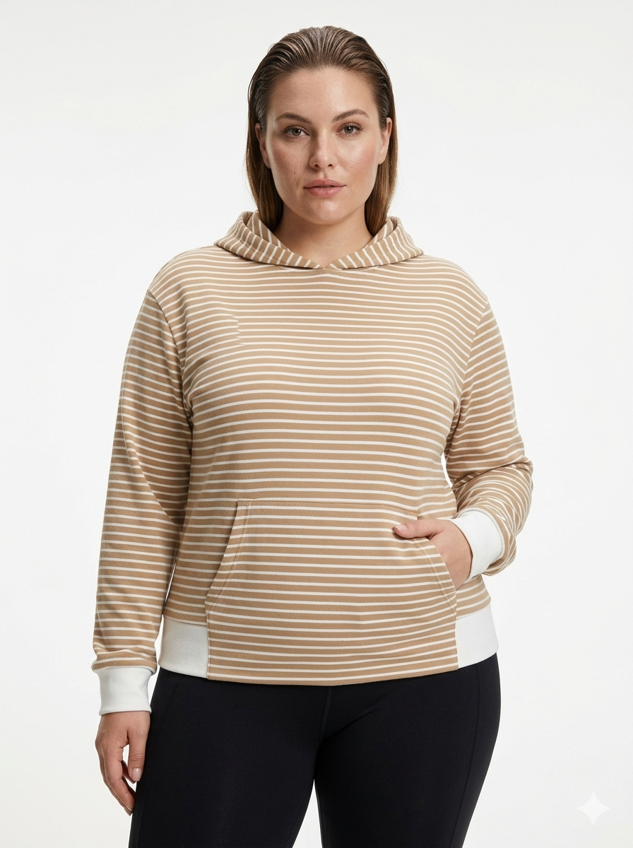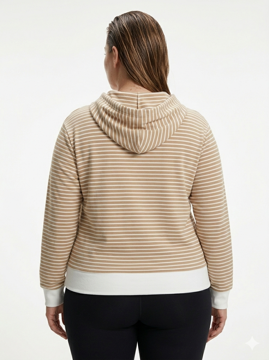 Canguro de darlon rayado con capucha, puño y cintura combinada. Talle único oversize.
