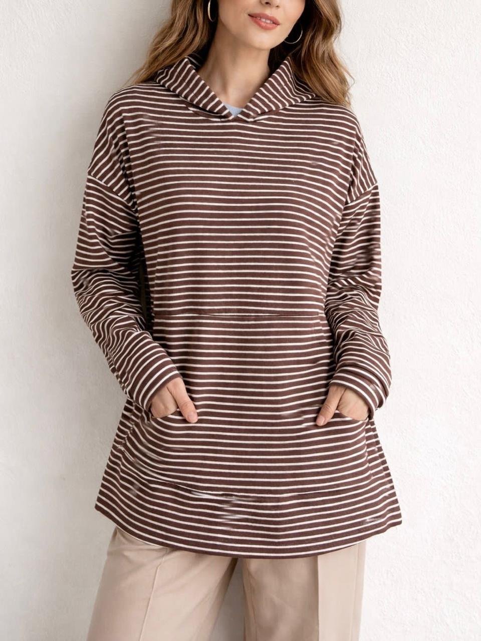 Buzo de darlon rayado con bolsillos talle unico oversize.