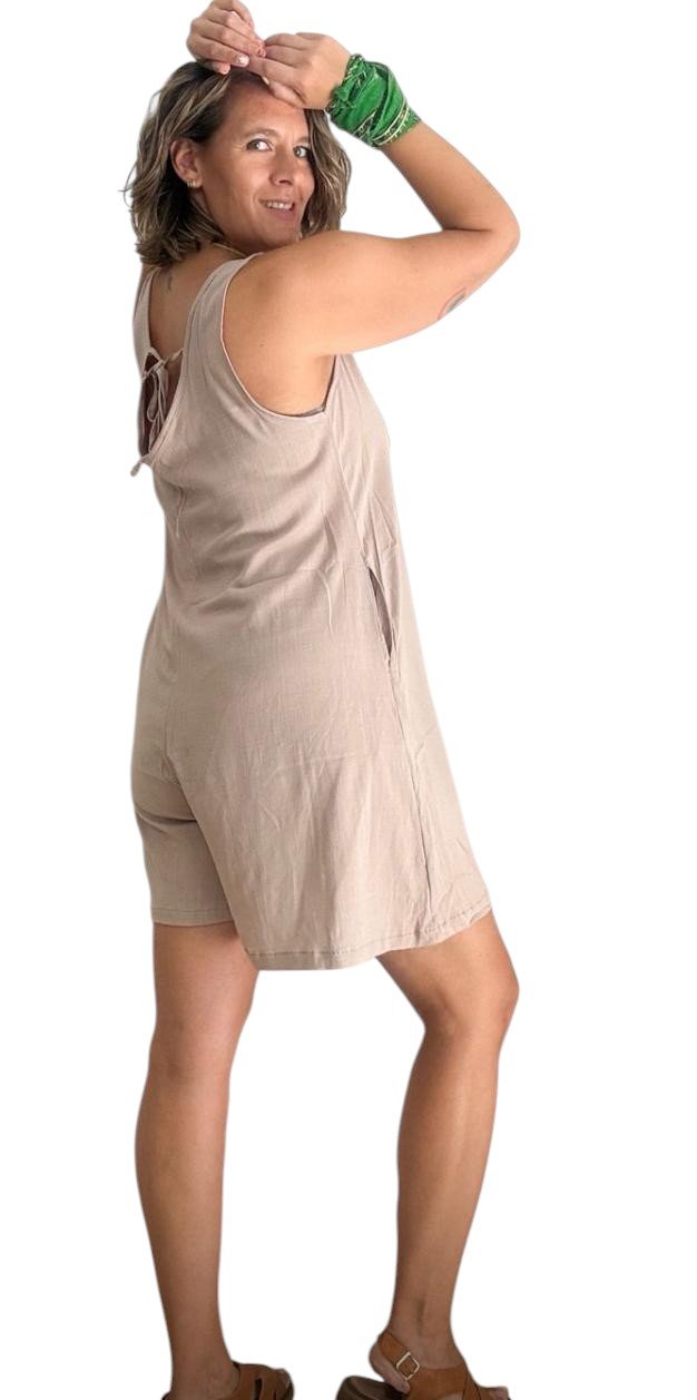 Mono con detalle de tajo en espalda y bolsillos laterales, confeccionada en lino con spandex.