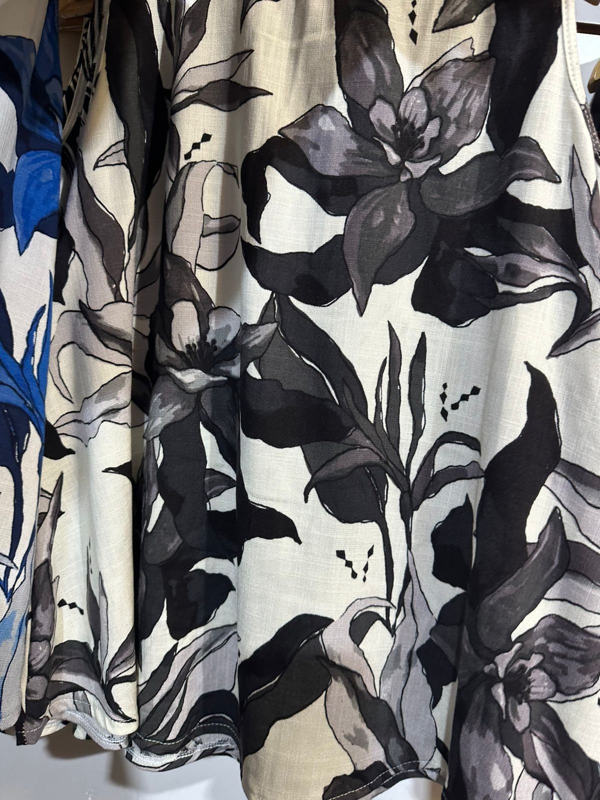 Musculosa de lino con spandex estampada corte evase. talle unico XXL.