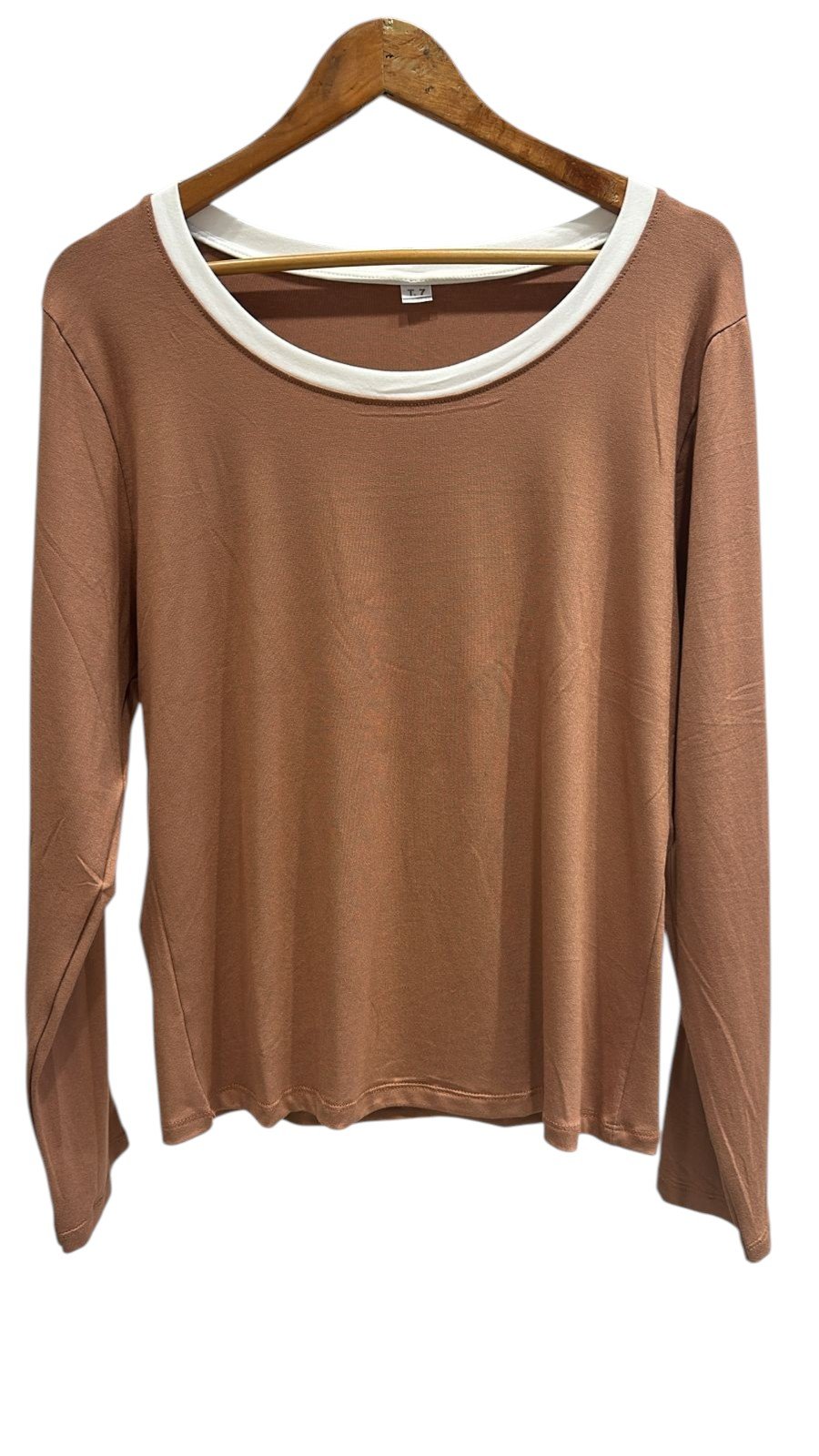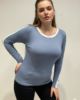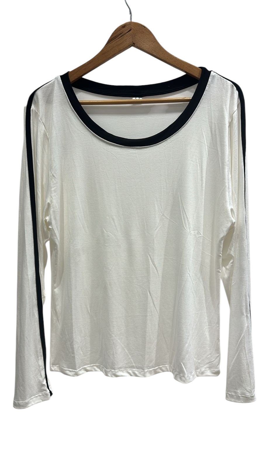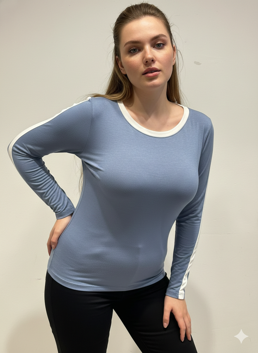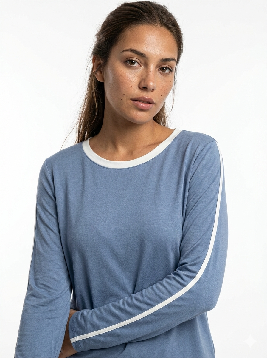 Remera de modal viscosa, manga larga con detalle de vivo blanco en la manga,