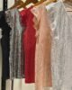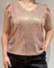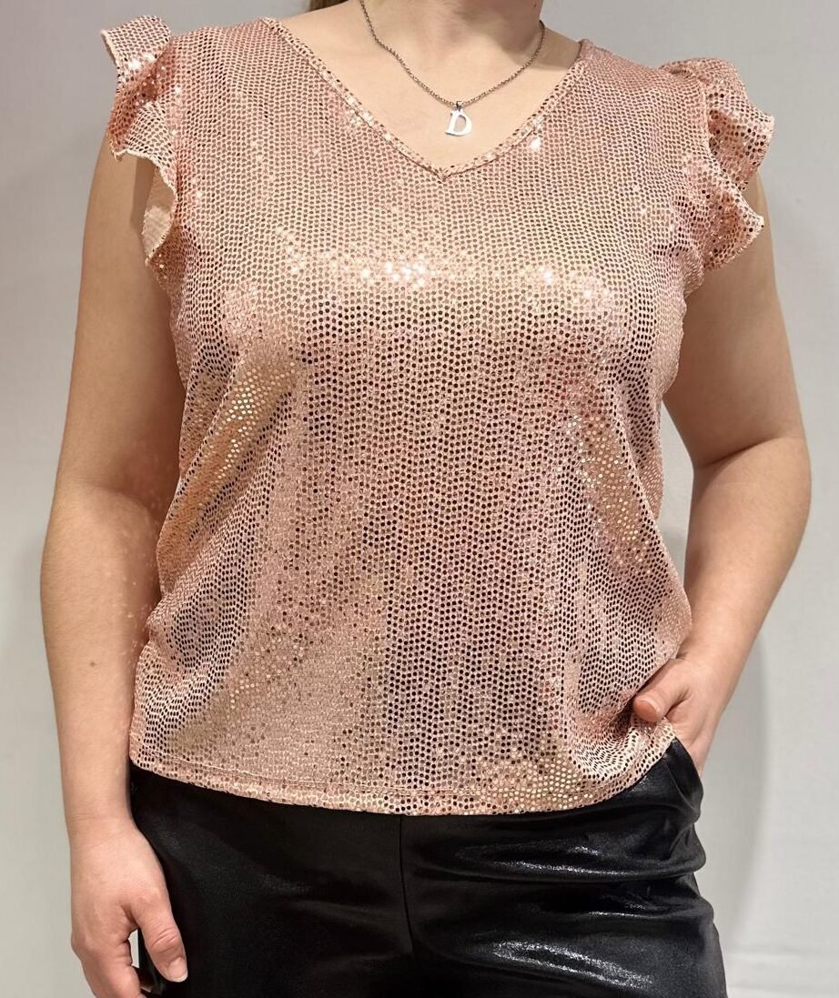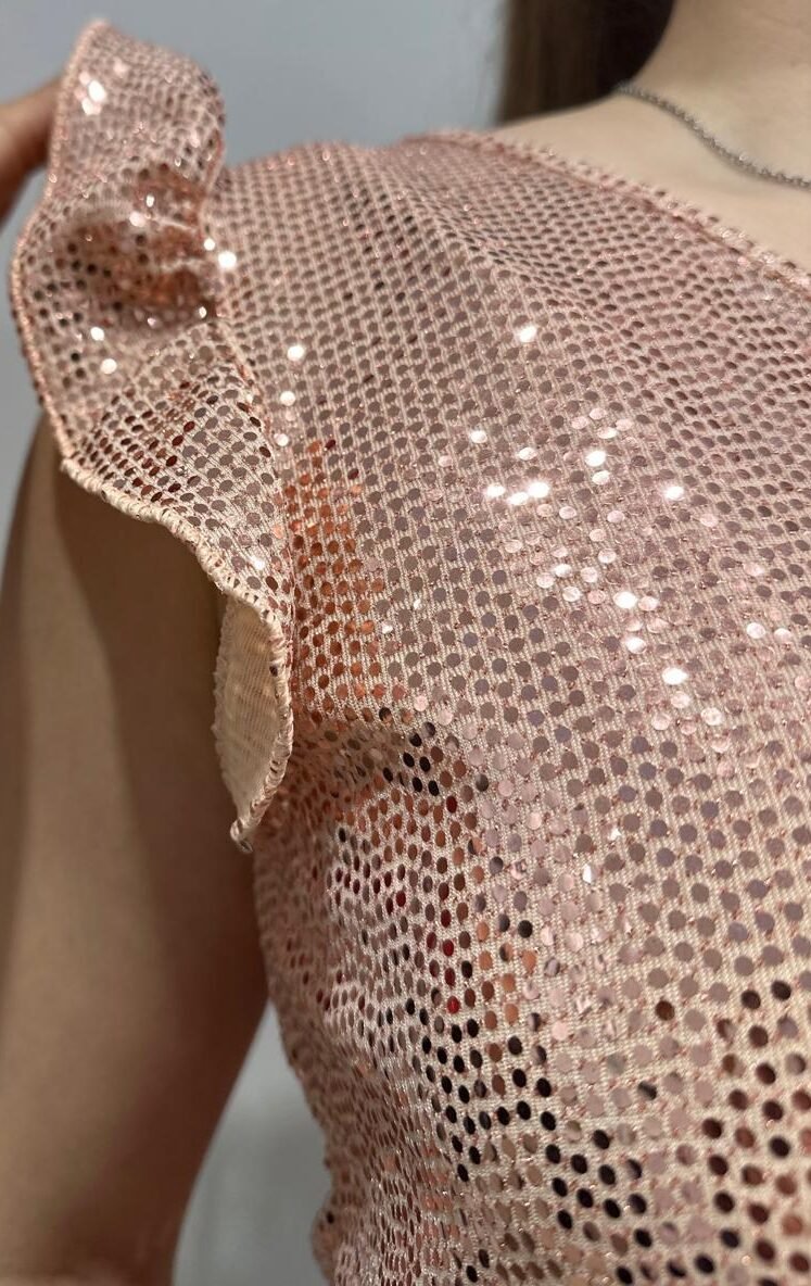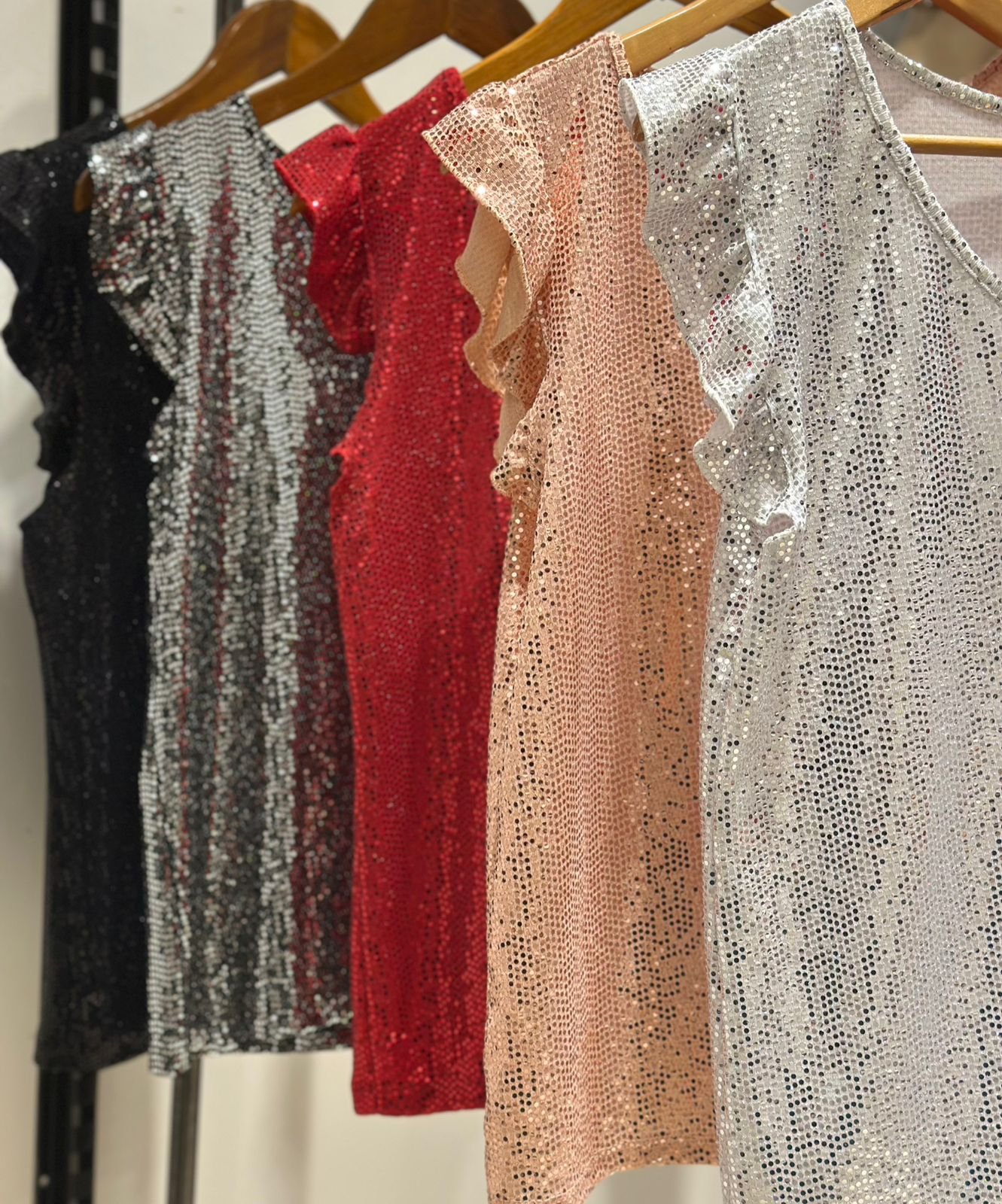 Remera de lentejuelas con volados en la manga, talle único abarca un xxl.