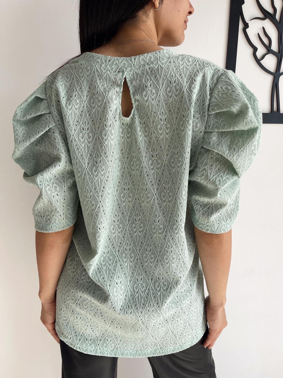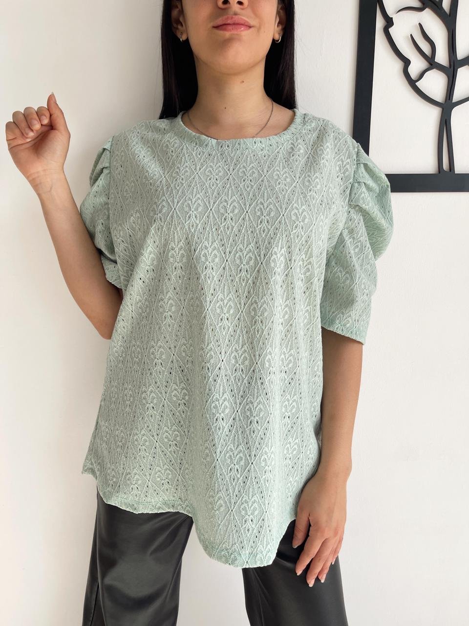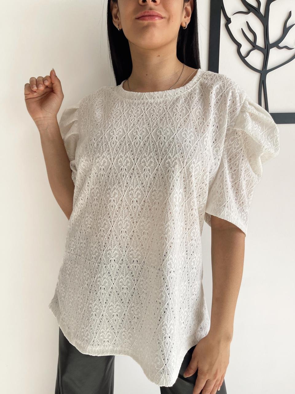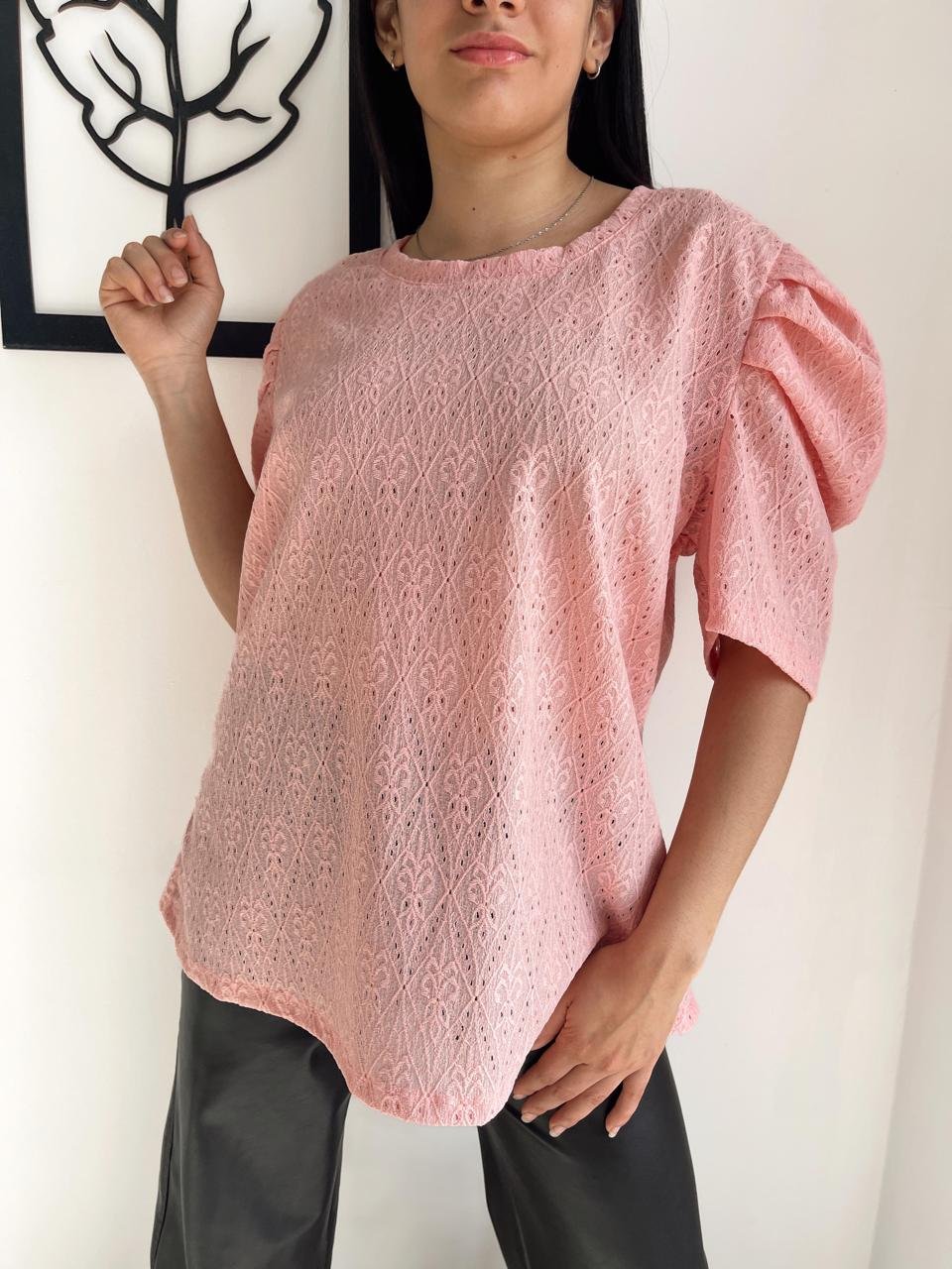 Remera de brodery, tiene manga princesa. con detalle de gota en la espalda con spandex, abarca un XXL/XXXl