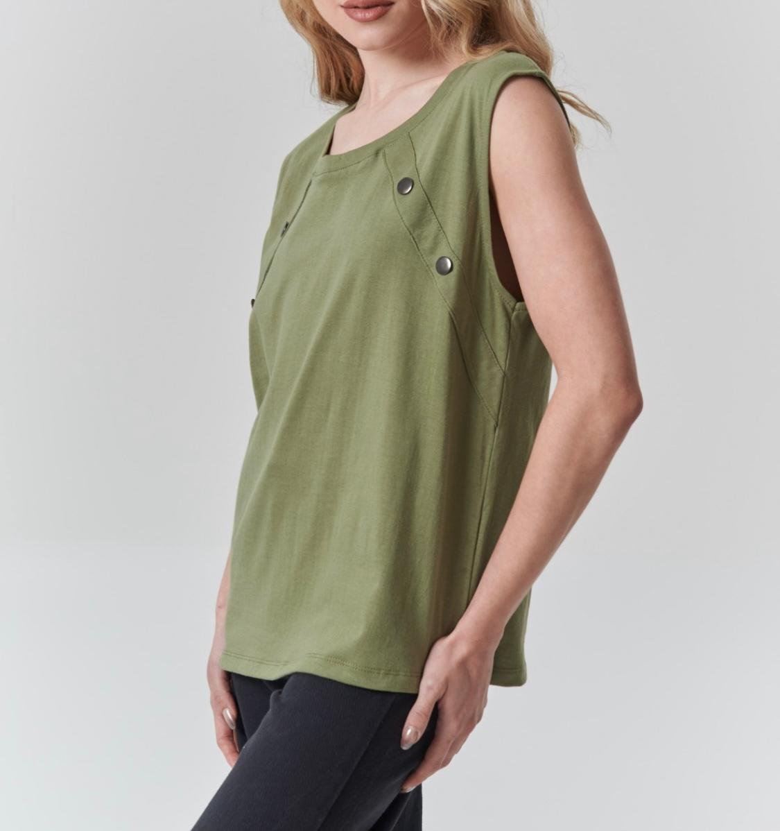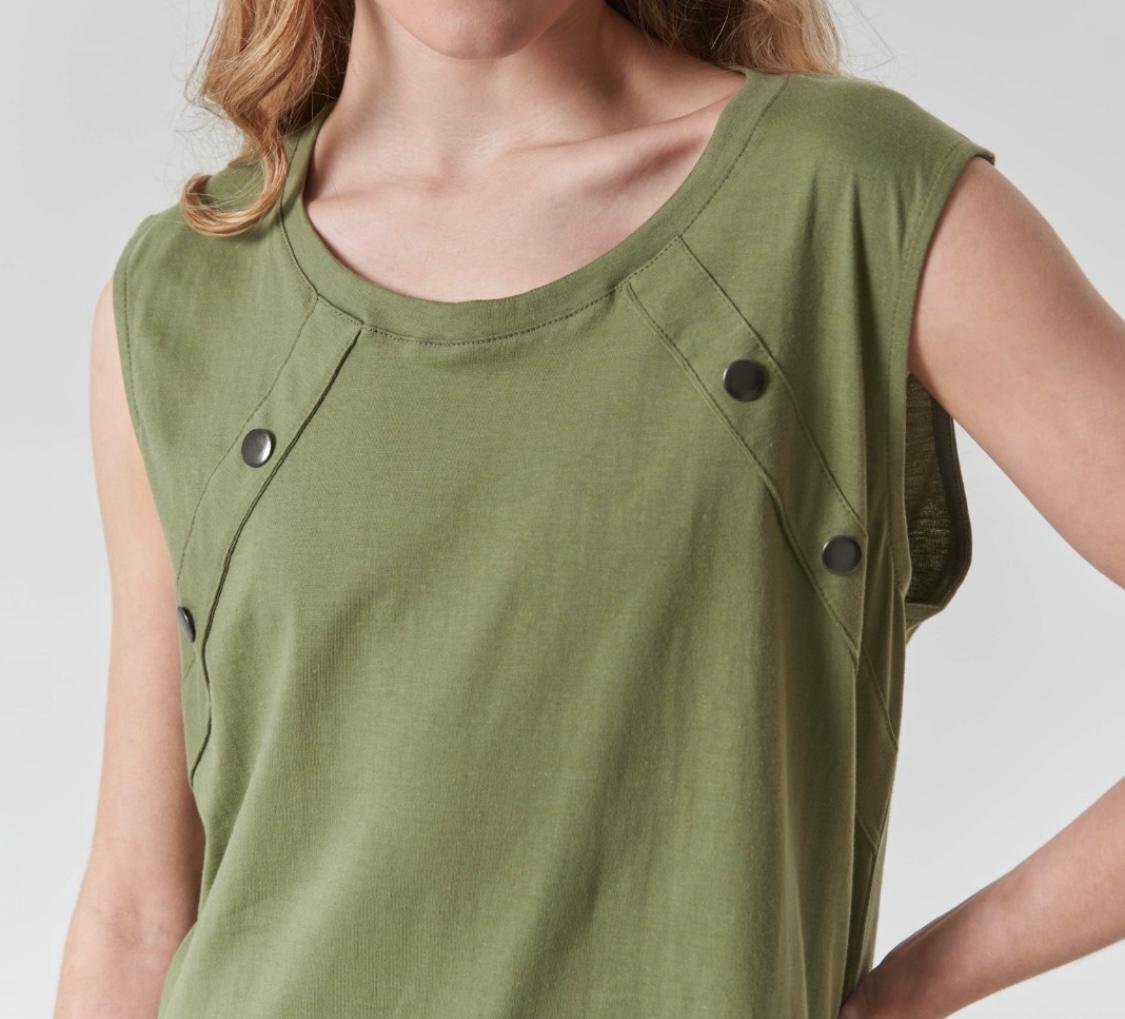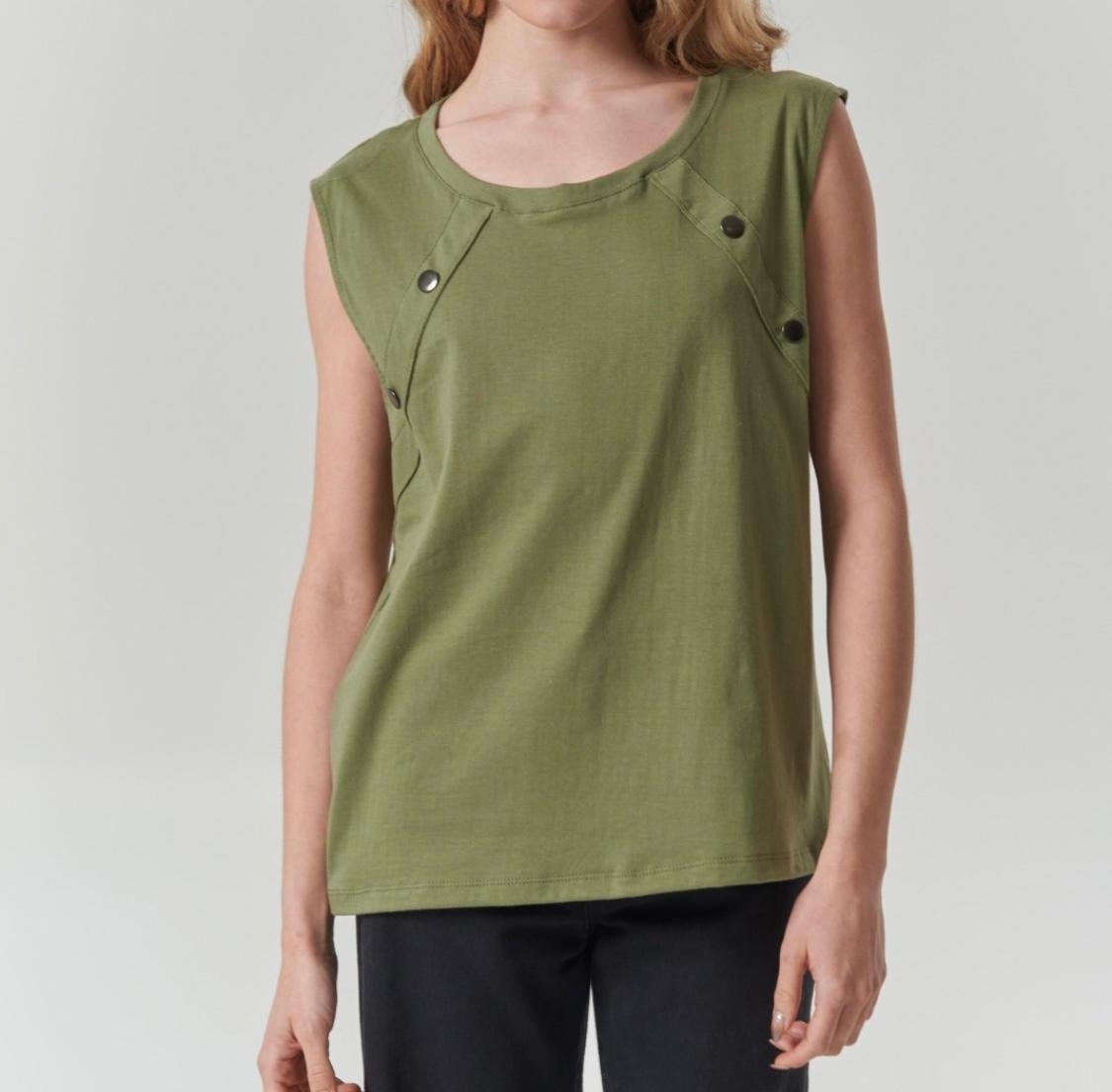 Remera de algodón peinado con broche delantero. Talle unico equivale a un XL/XXL.
