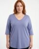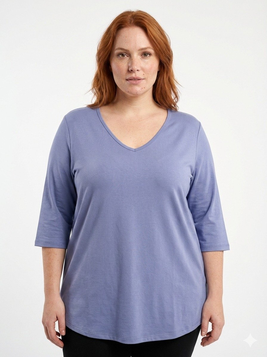 Remera escote en V corte evasé de algodón, manga 3/4.