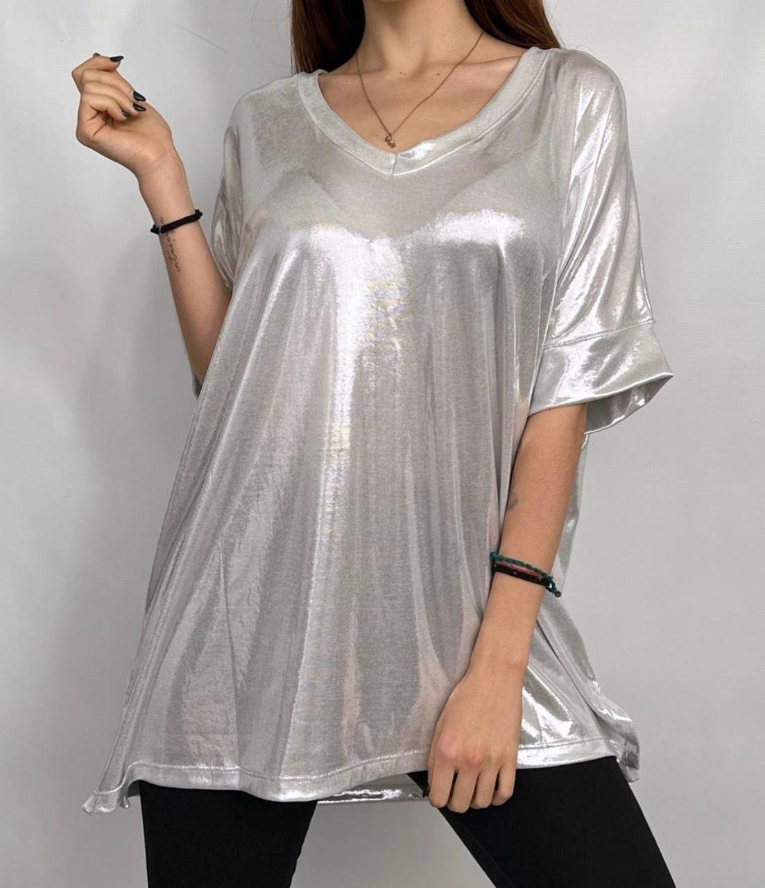 Remeron foil night con escote en V, talle único oversize abarca un XXL hasta 3XL inclusive.