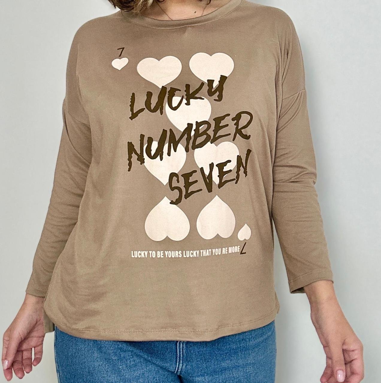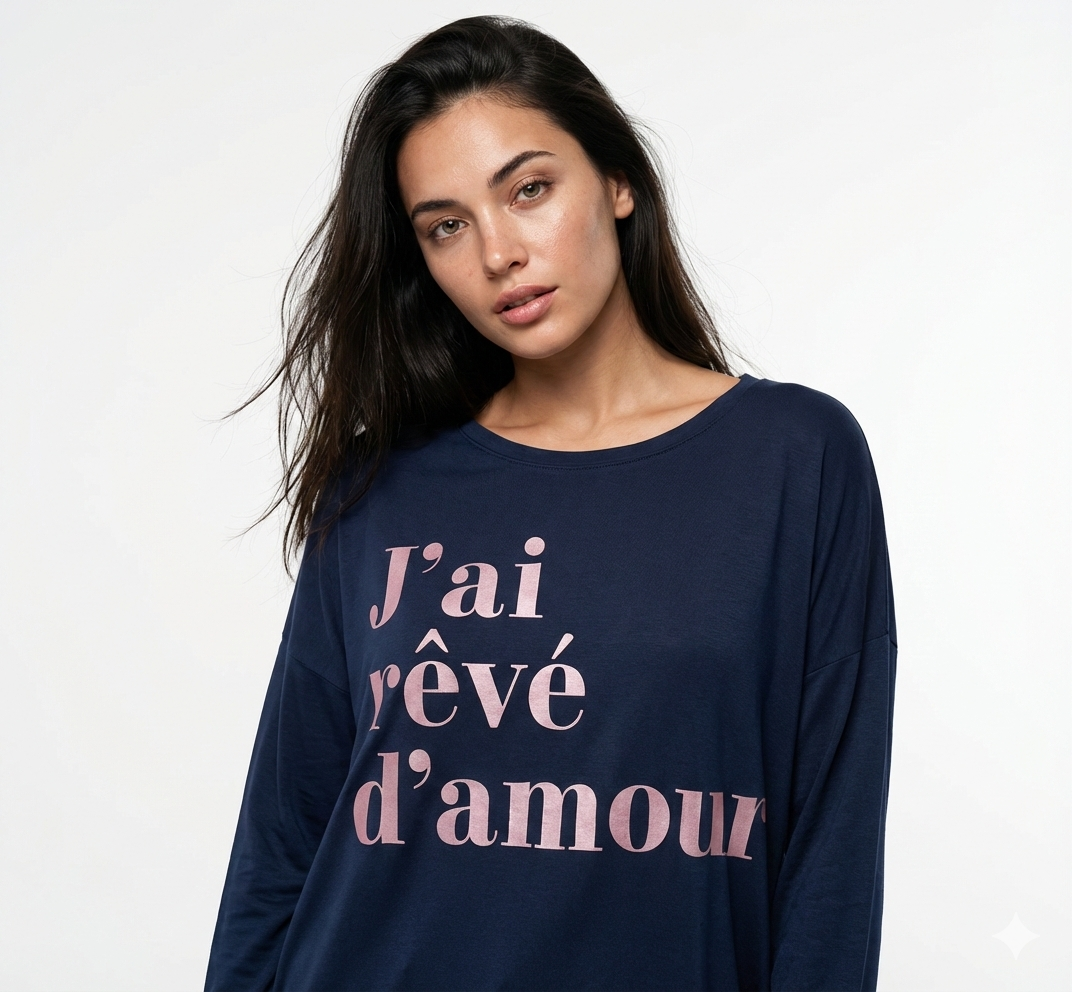 Remera de modal estampada parte delantera, talle único oversize. Medidas: sisa 68cm. Largo: 63cm.