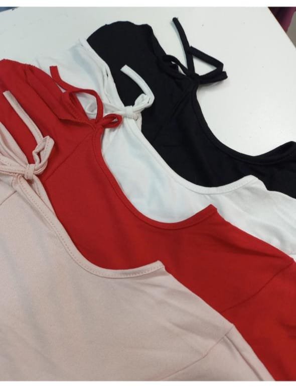 Remera de modal viscosa crep, detalle lazo en la manga, talle unico abarca un XXL