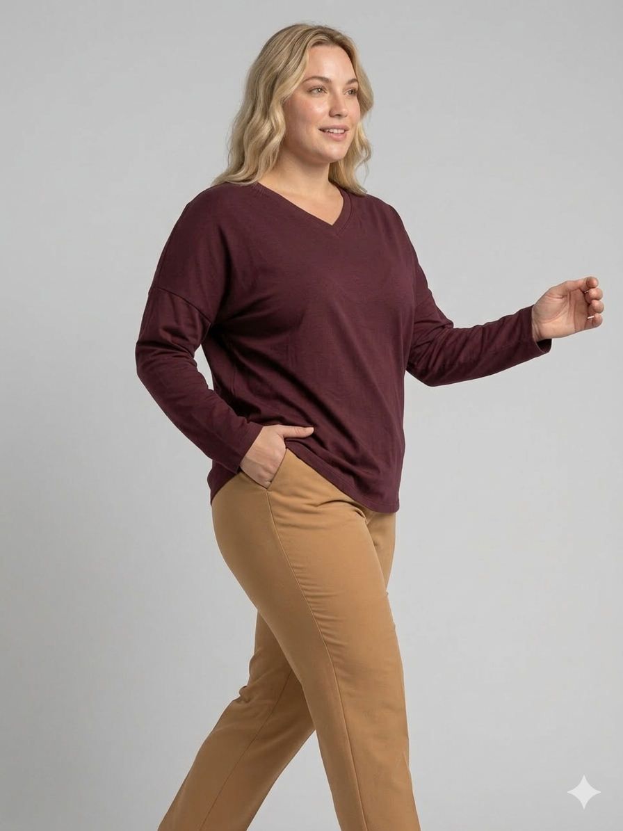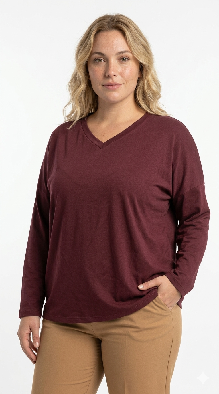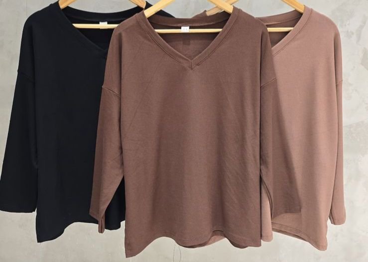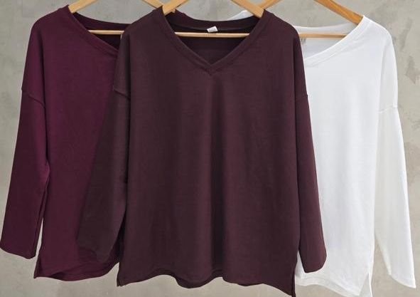 Remera de algodon rip viscosa, con tajos laterales. escote en V.