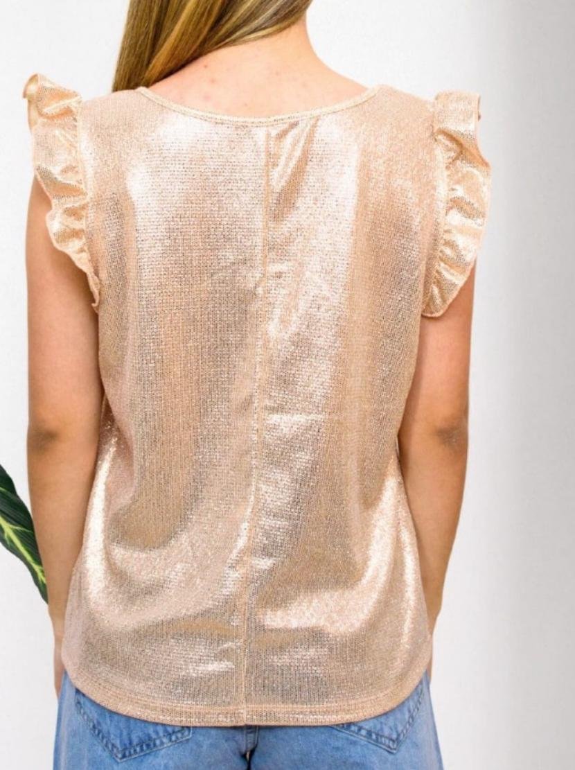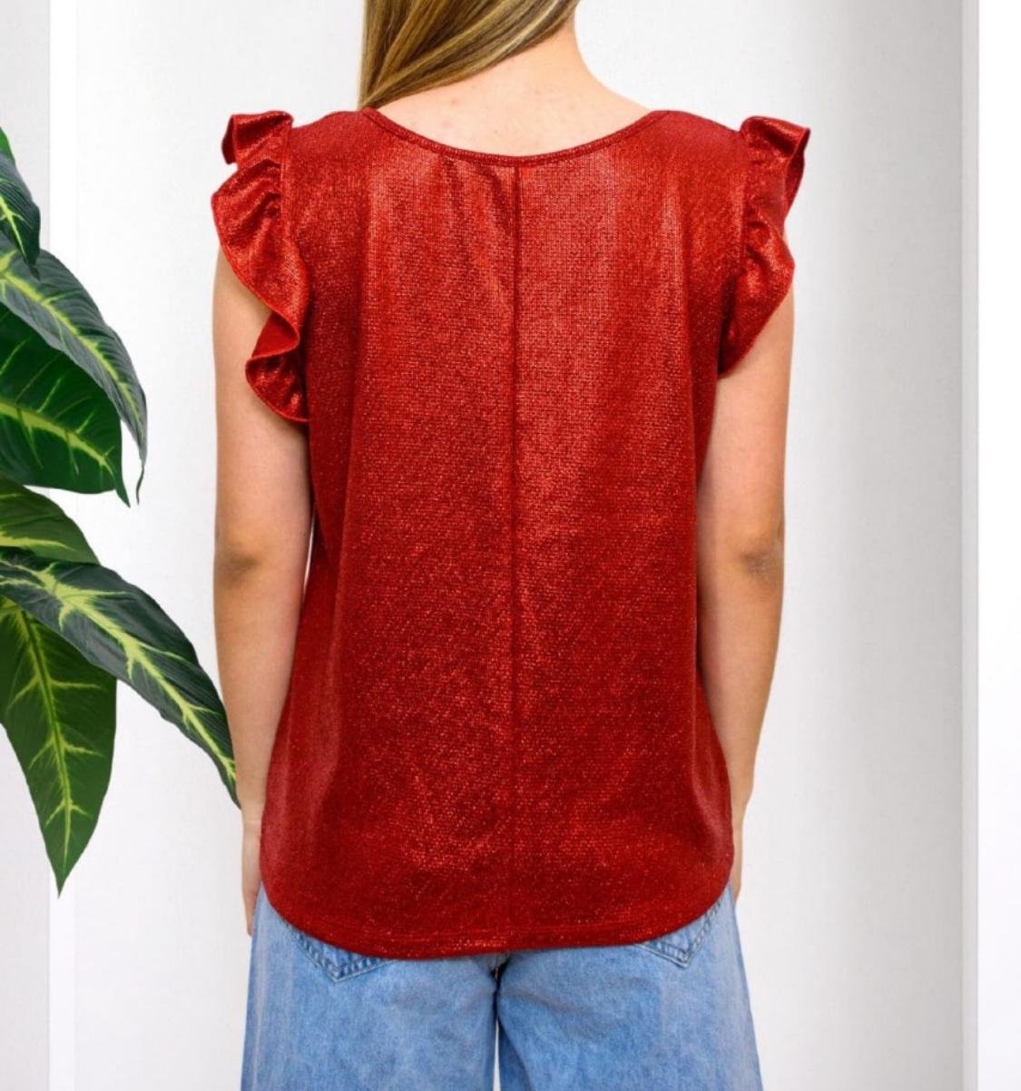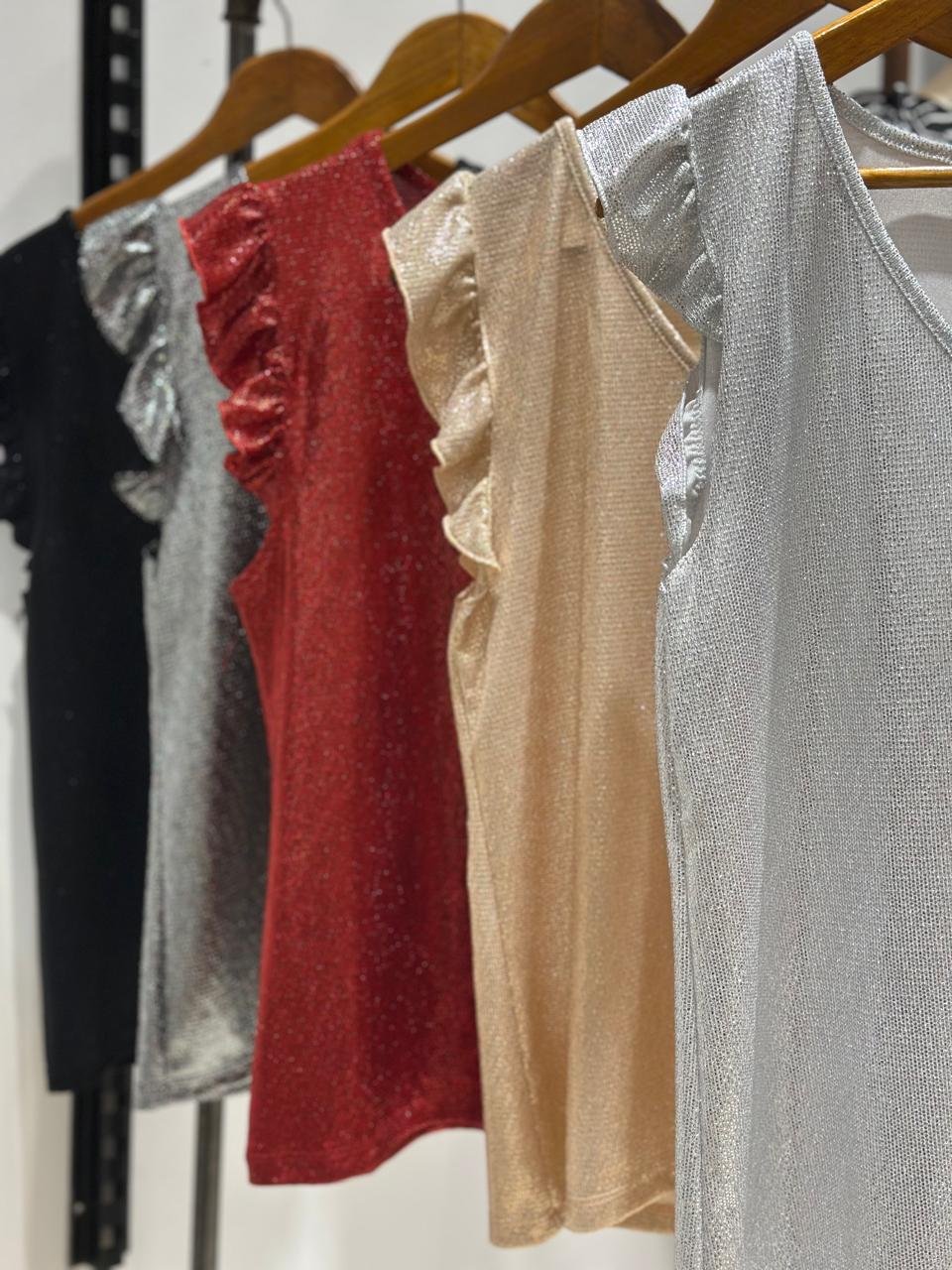 Remera de foil de noche manga con volados.