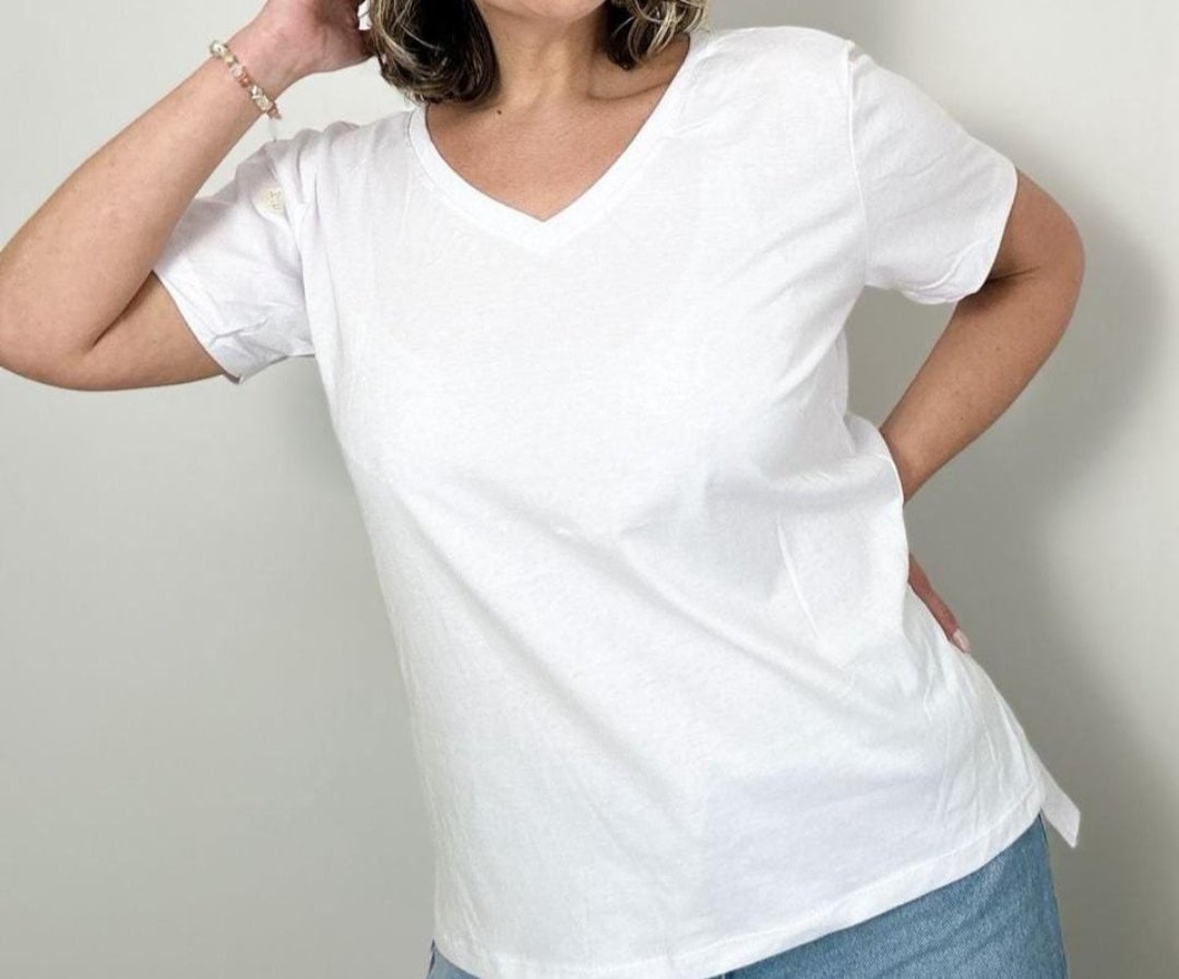 Remera yeiset de algodón, con escote en forma de V y detalle de tajos en los laterales.