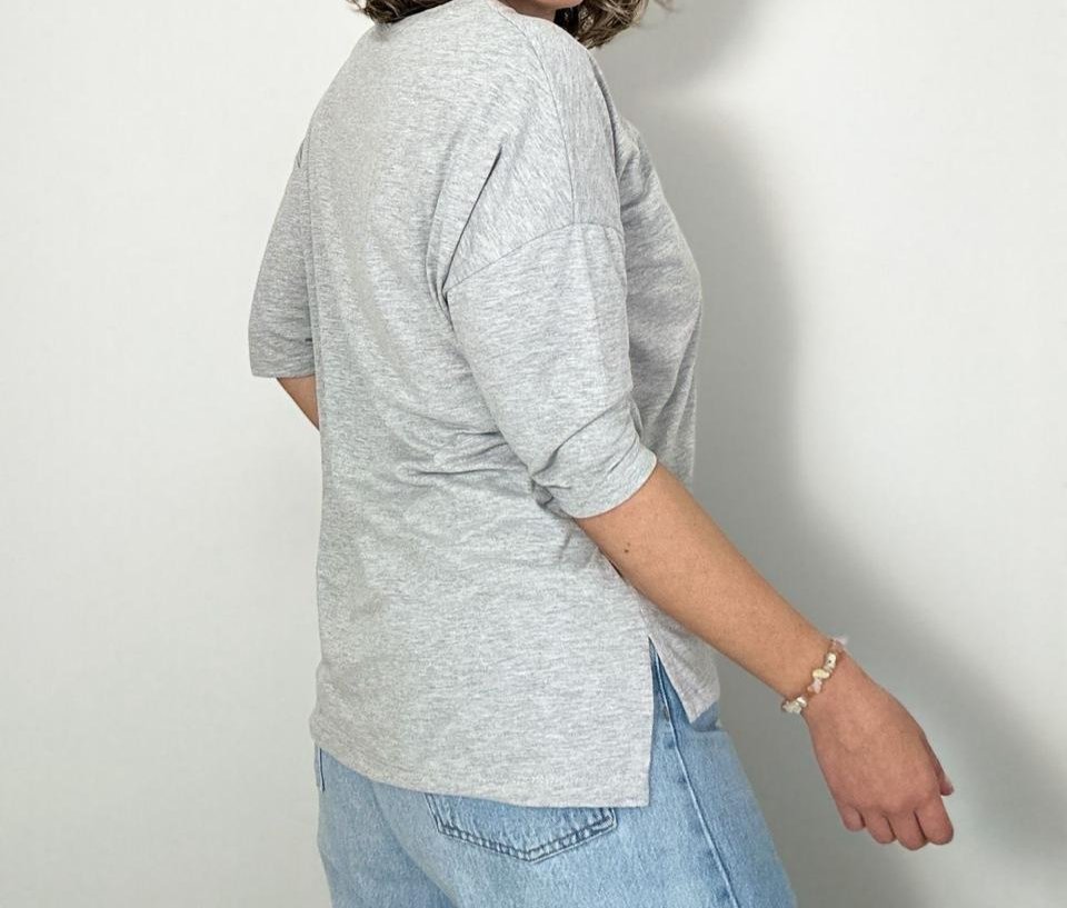 Remerón yeiset de algodón, tiene cuello redondo y detalles con tajos laterales.