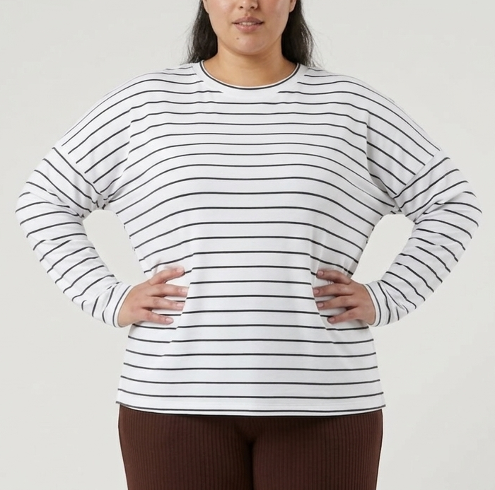 Remeron rayado de modal soft oversize, con cuello redondo.