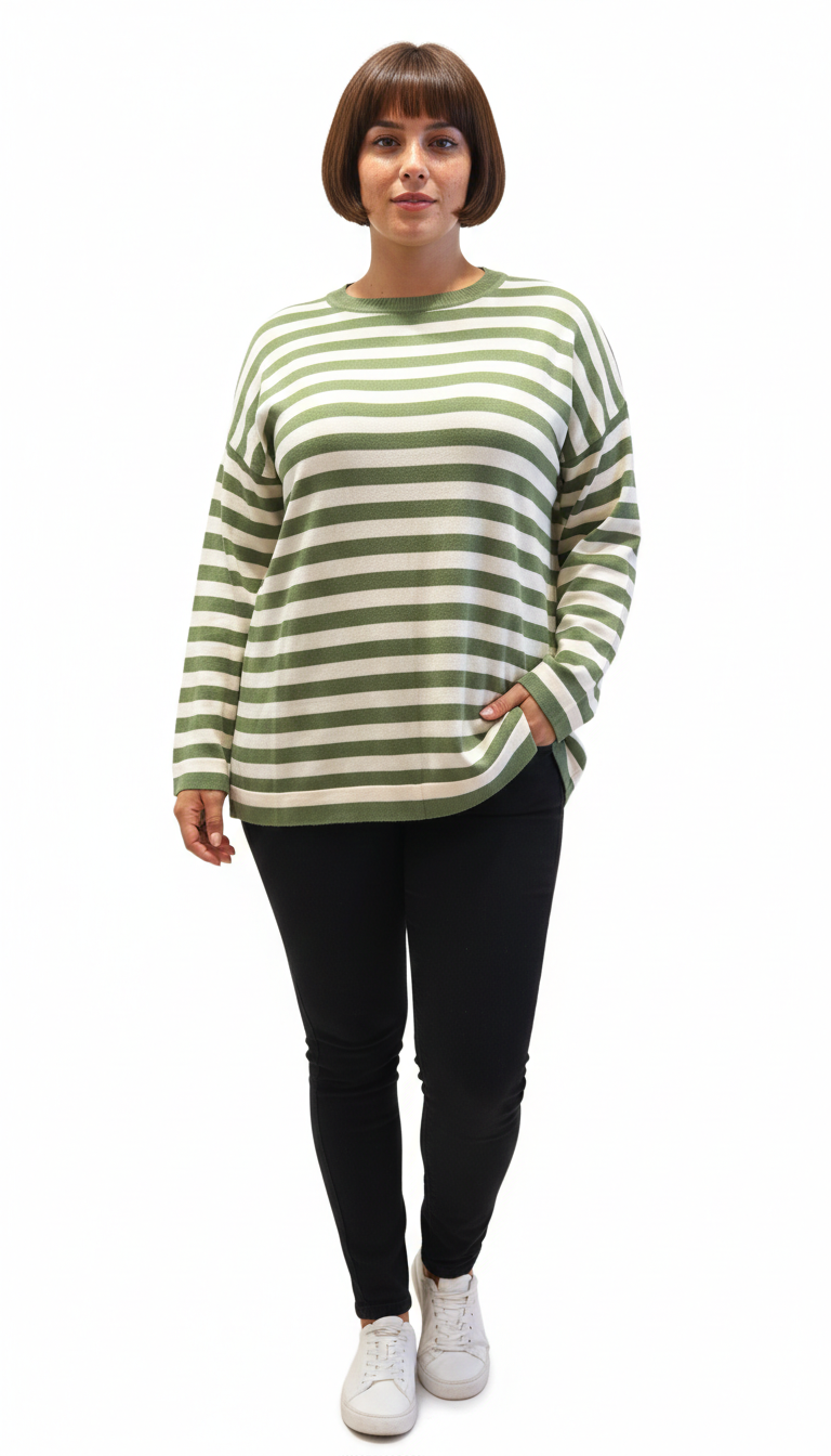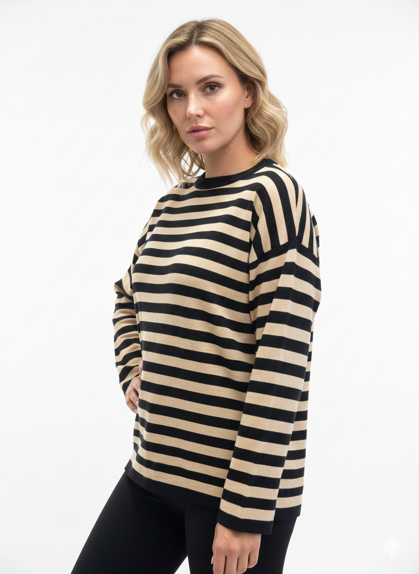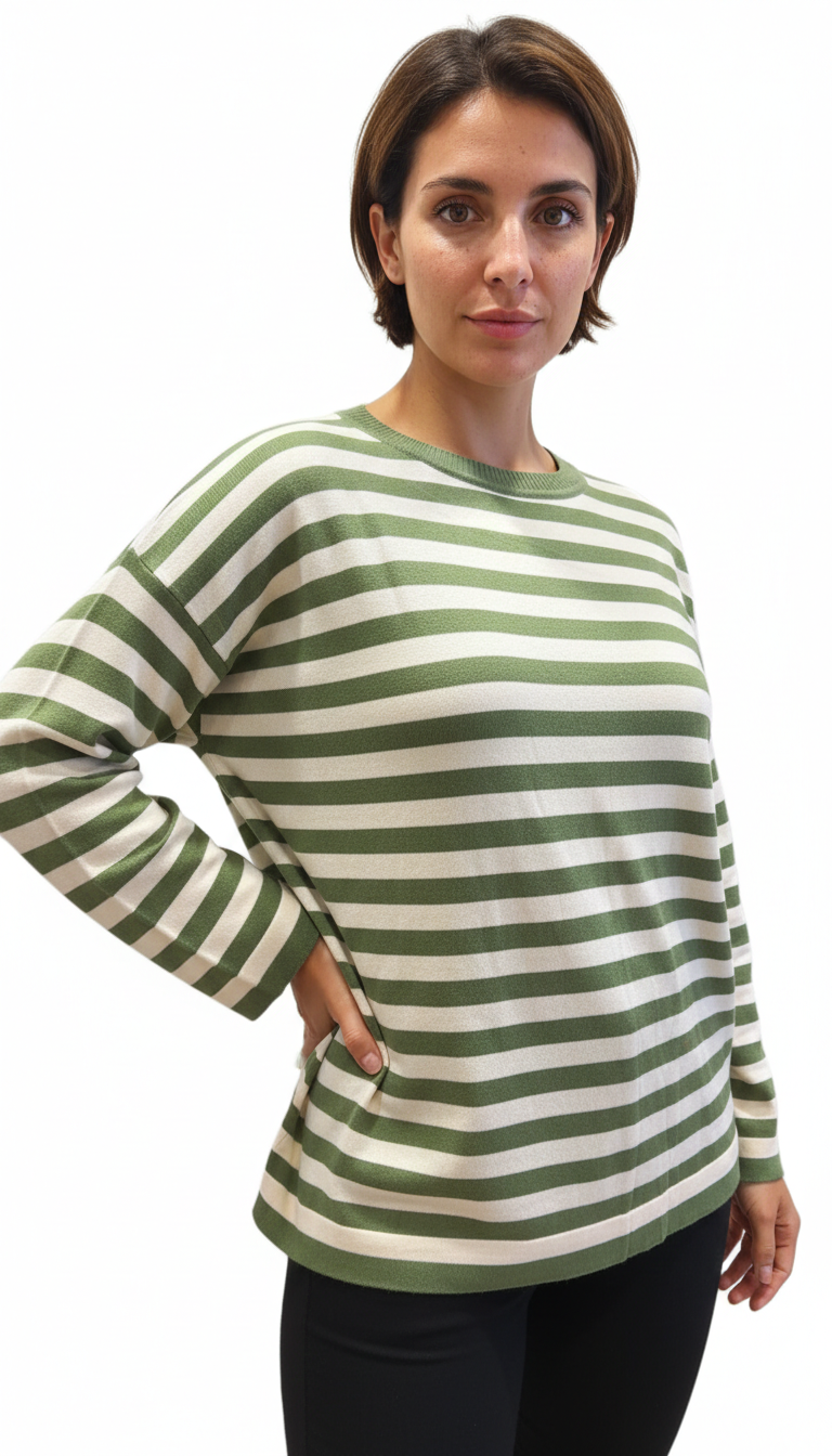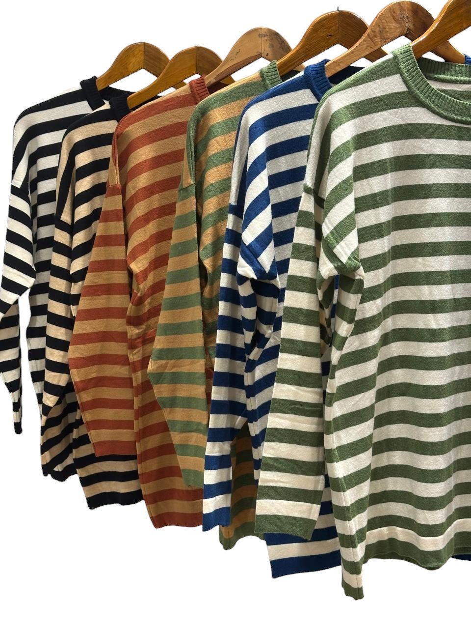 Sweater rayado de tejido Bremer, talle único oversize. medidas: Ancho 57cm.