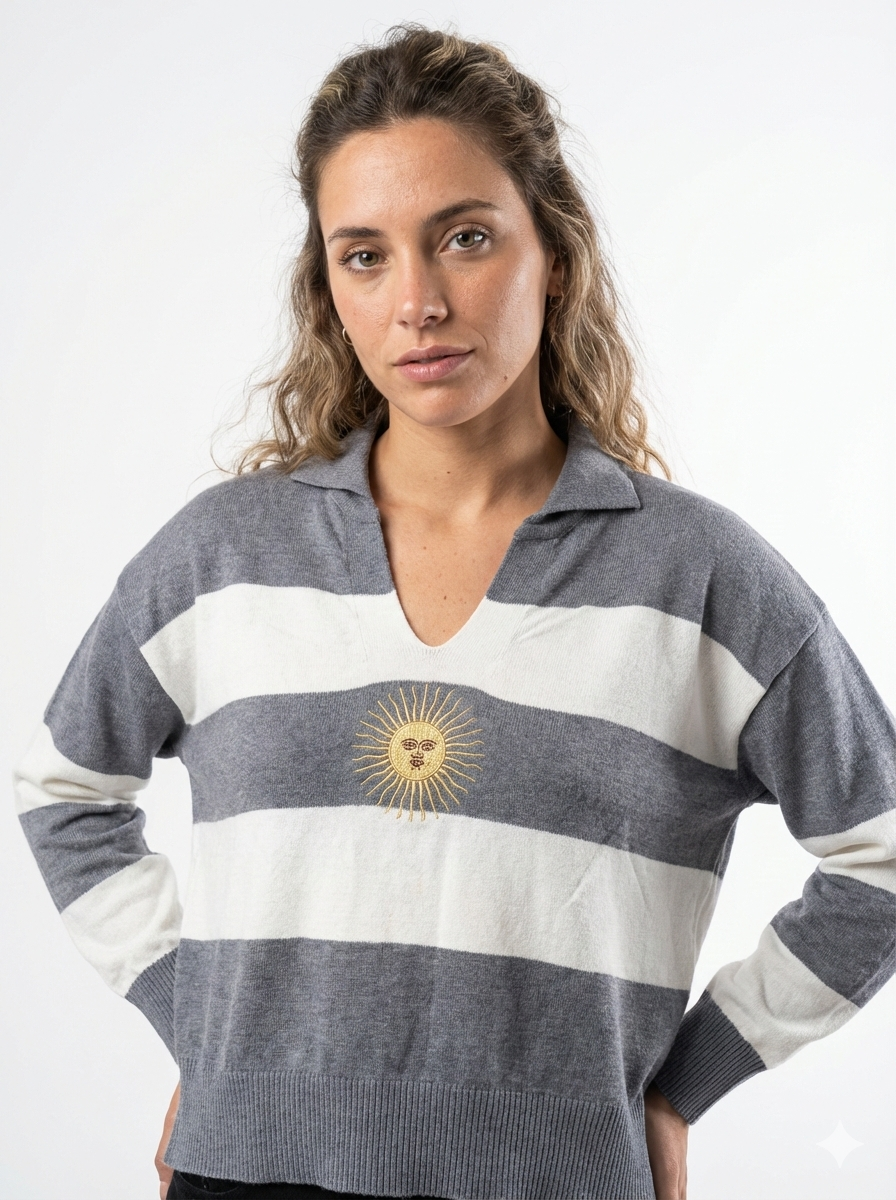 Sweater de tejido bremer rayado talle único bordado. Medidas: ancho 56cm largo 53cm