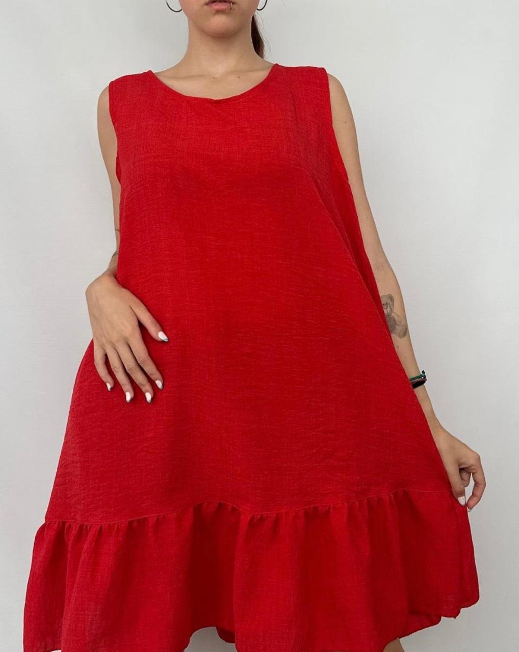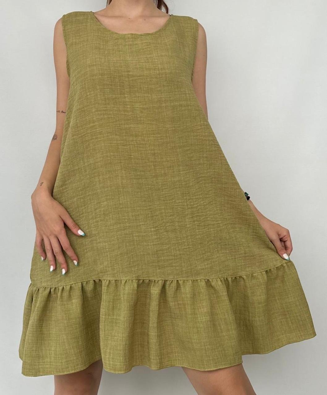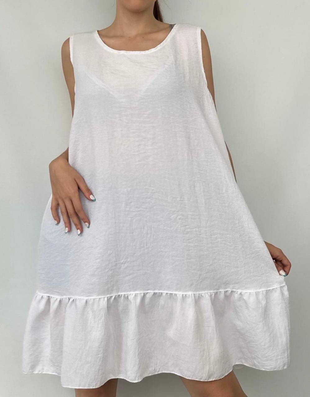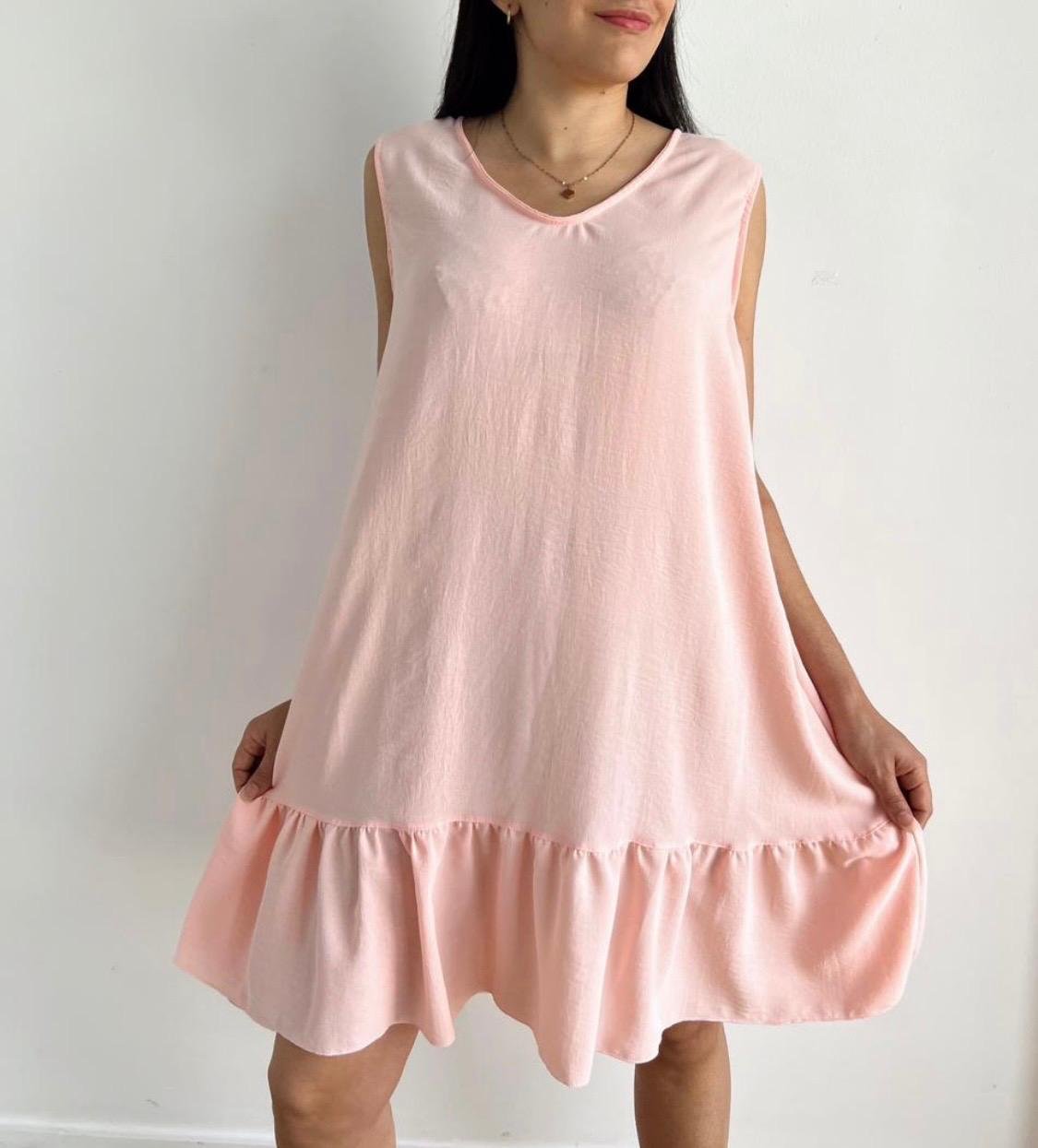 Vestido de lino ceyl liso. Viene en talle único oversize con volados abajo