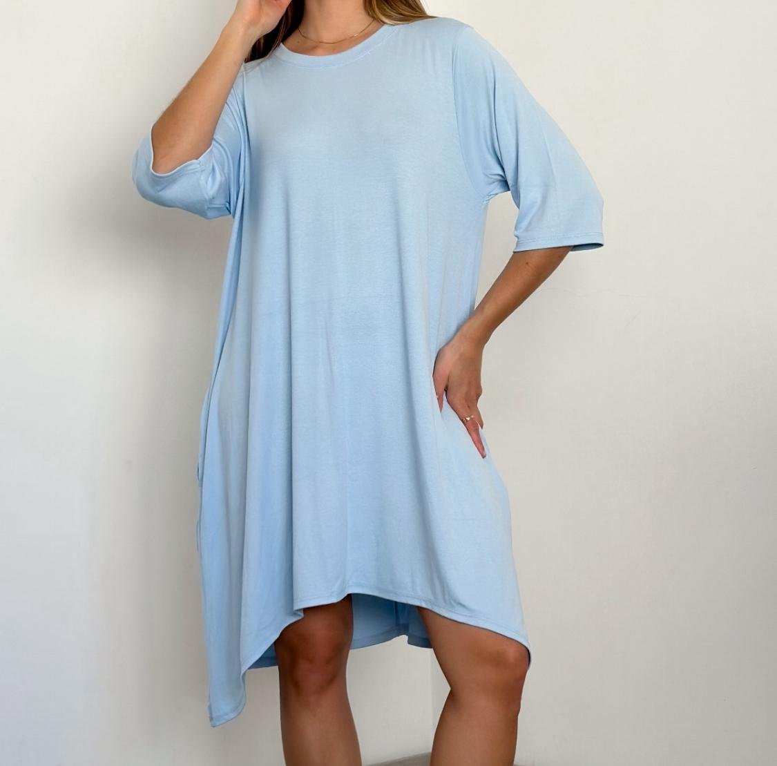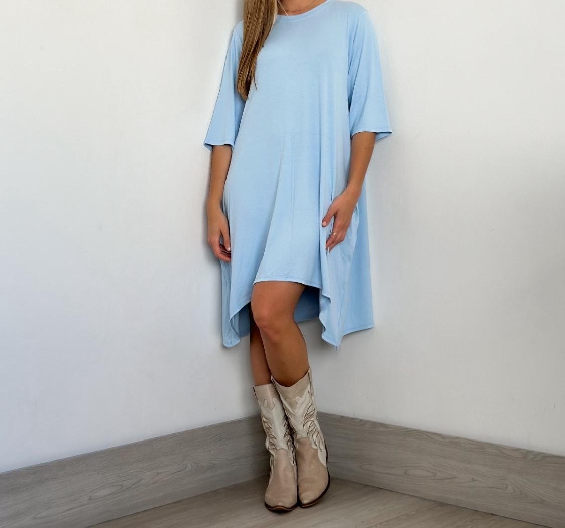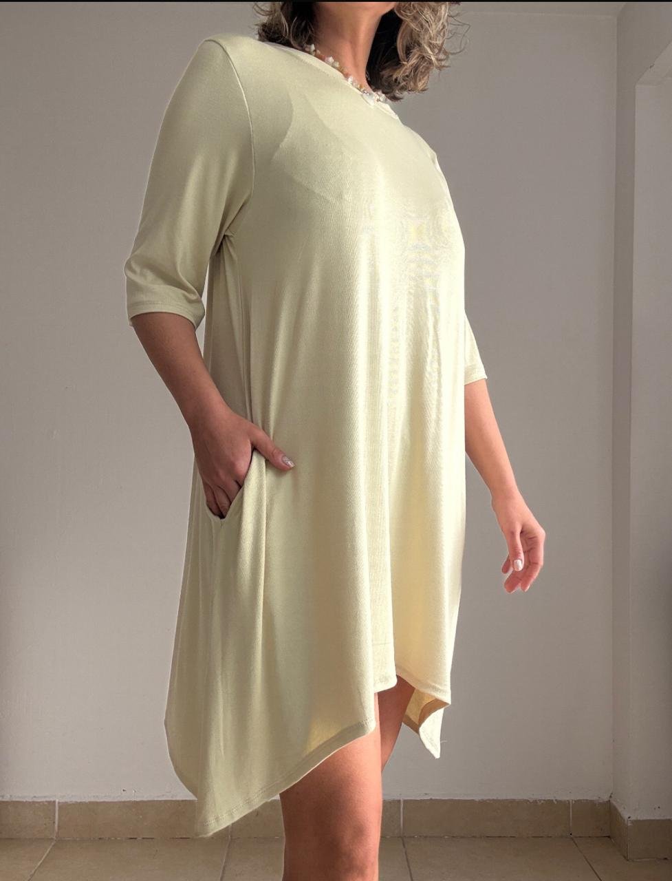 Vestido corto irregular de morley algodon, manga 3/4 talle unico, abarca un XXL real.