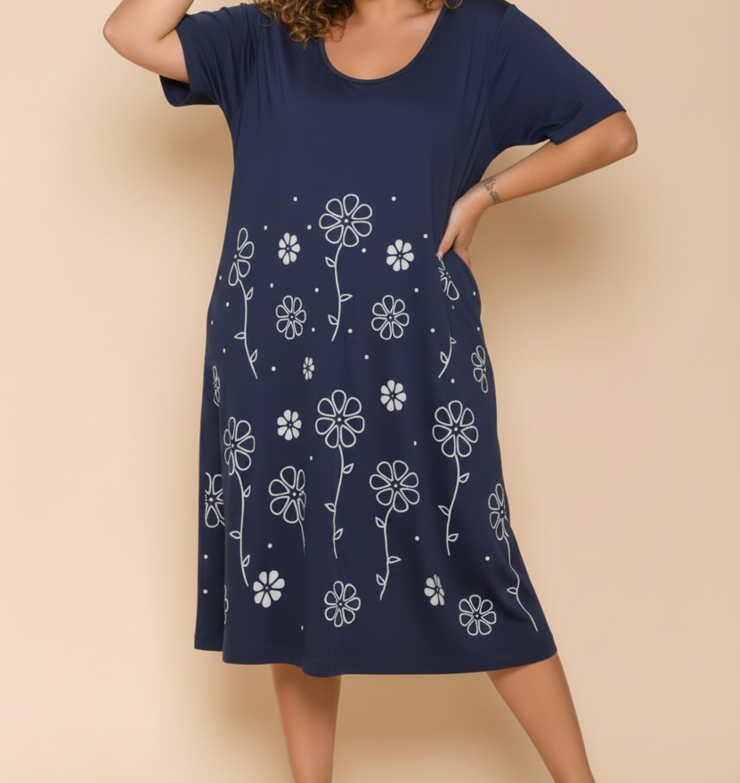 Vestido modal viscosa con bolsillos a los costados estampado.