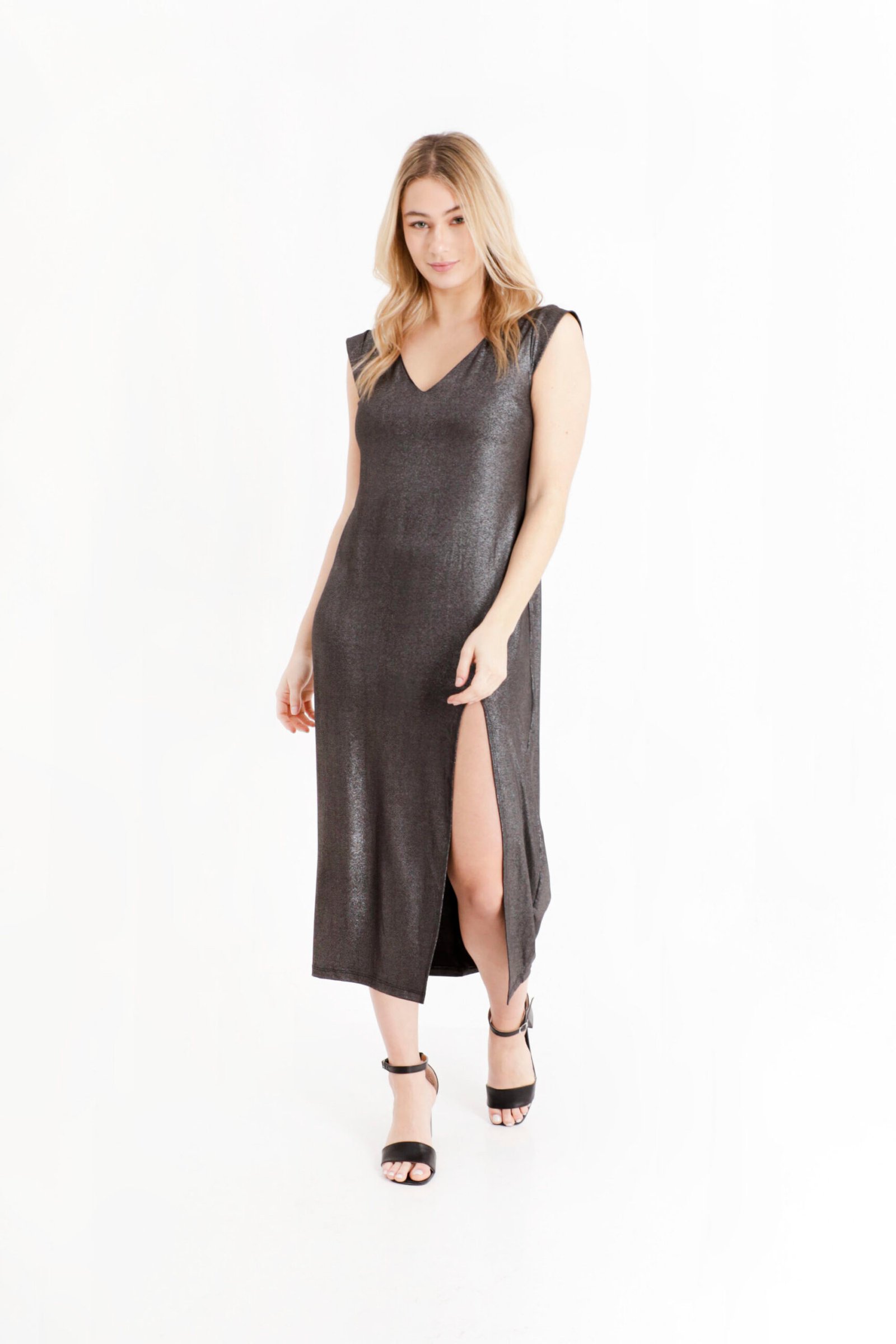 Vestido de foil brilloso.