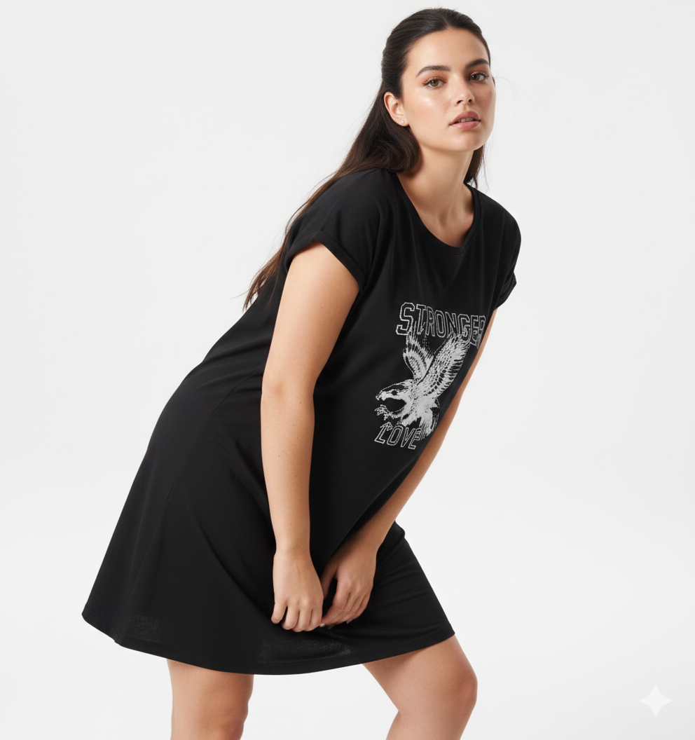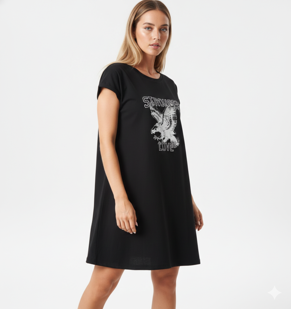 Vestido de algodón talle unico oversize, estampa delantera.